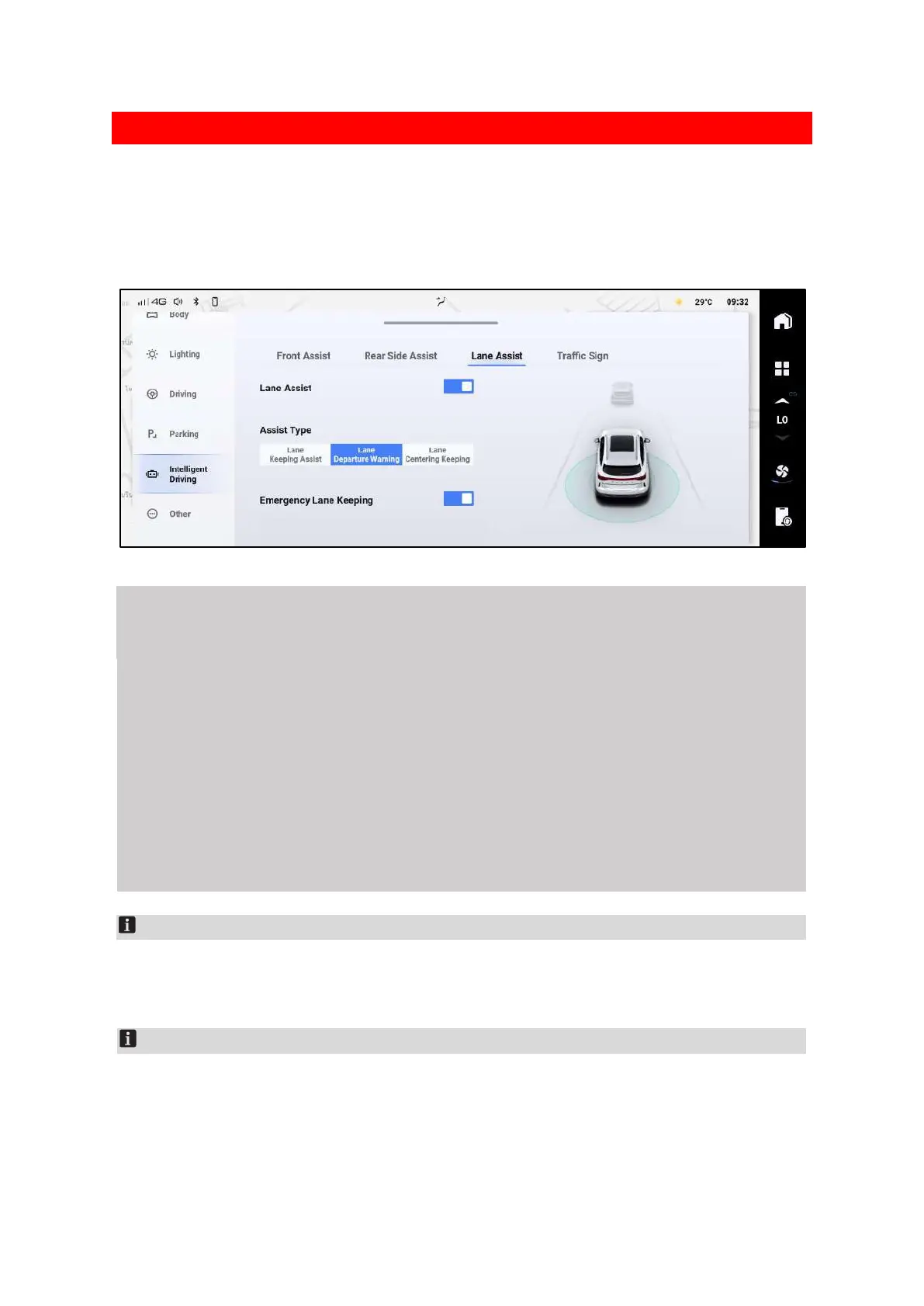 The lane assist is designed for driving on motorways and other roads in good conditions. Lane