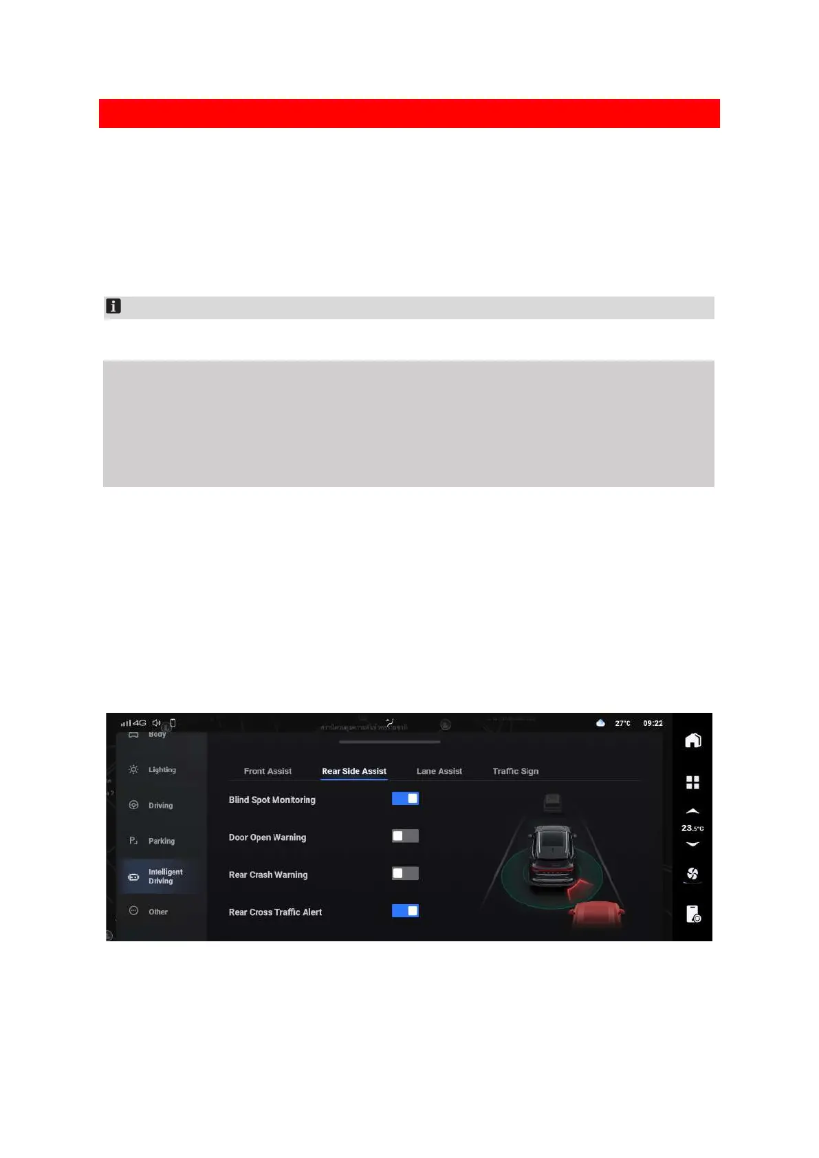 The rear side assist can detect vehicles behind you or in the adjacent lanes via the sensors on both
