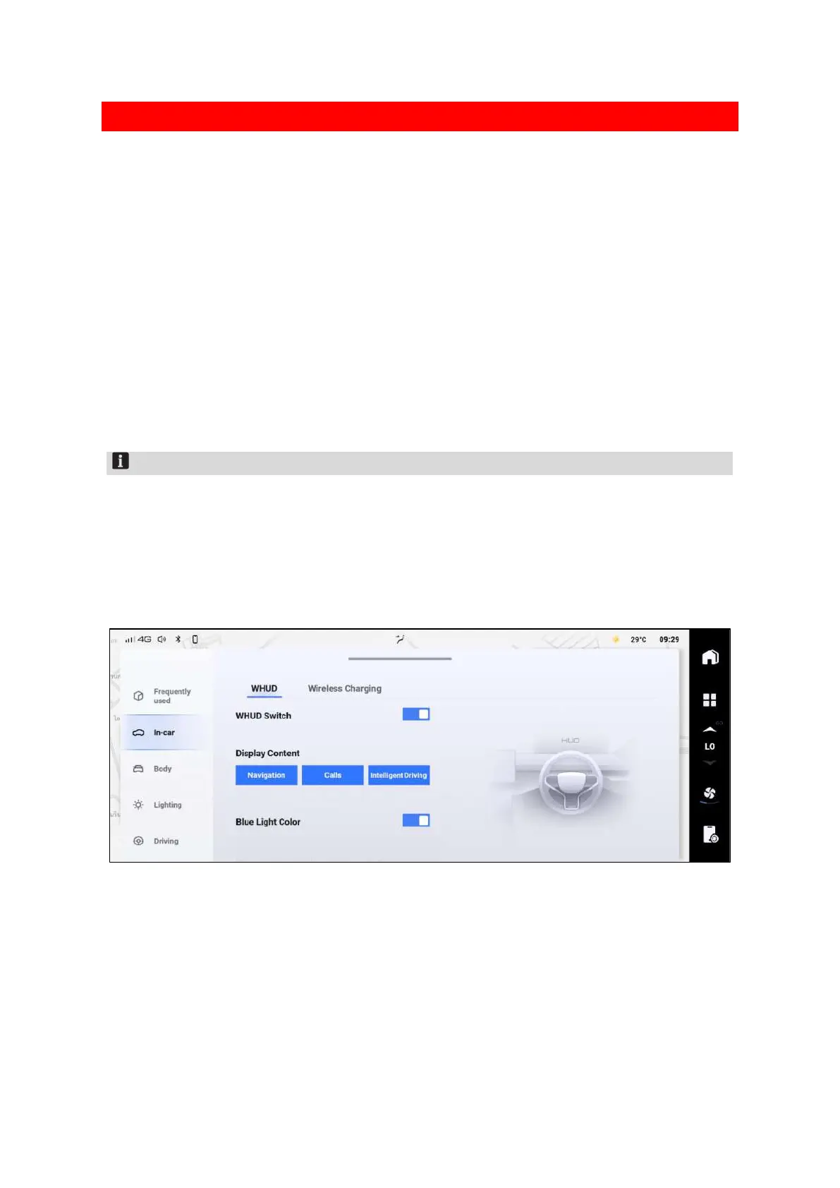After the vehicle is started, the head up display (HUD) can be turned on or off via the multimedia