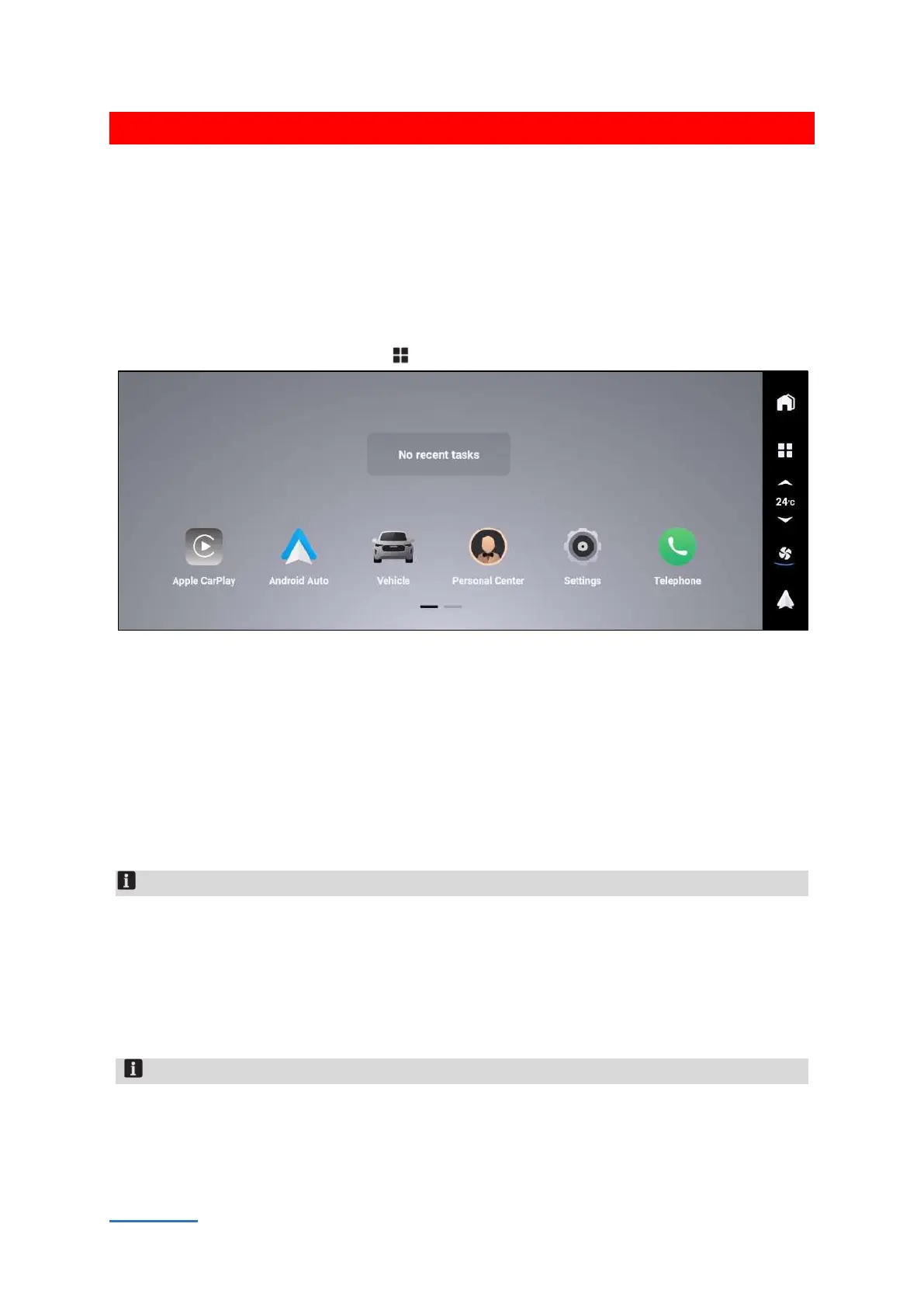 The application icons are displayed at the bottom. Touch the application icons to switch to application