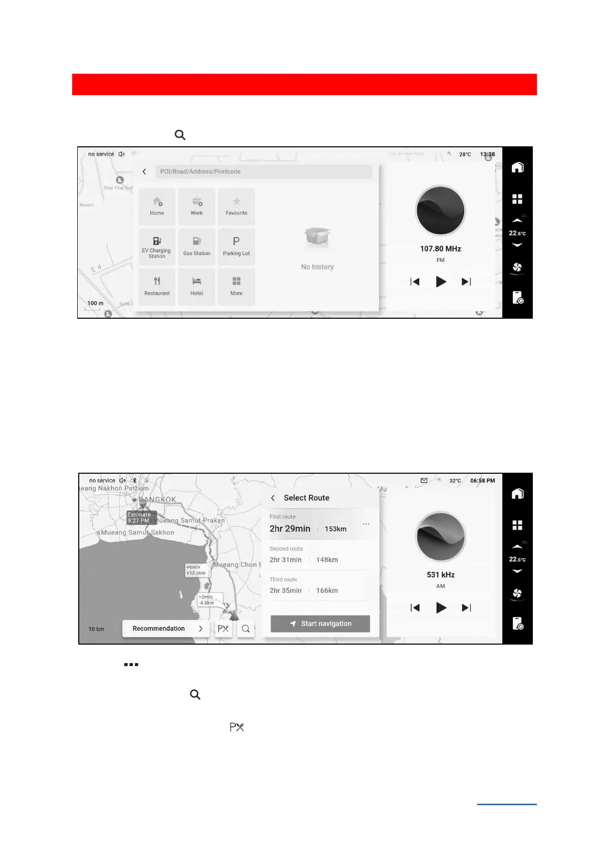 After set the destination in various ways, you can switch to the planning interface.