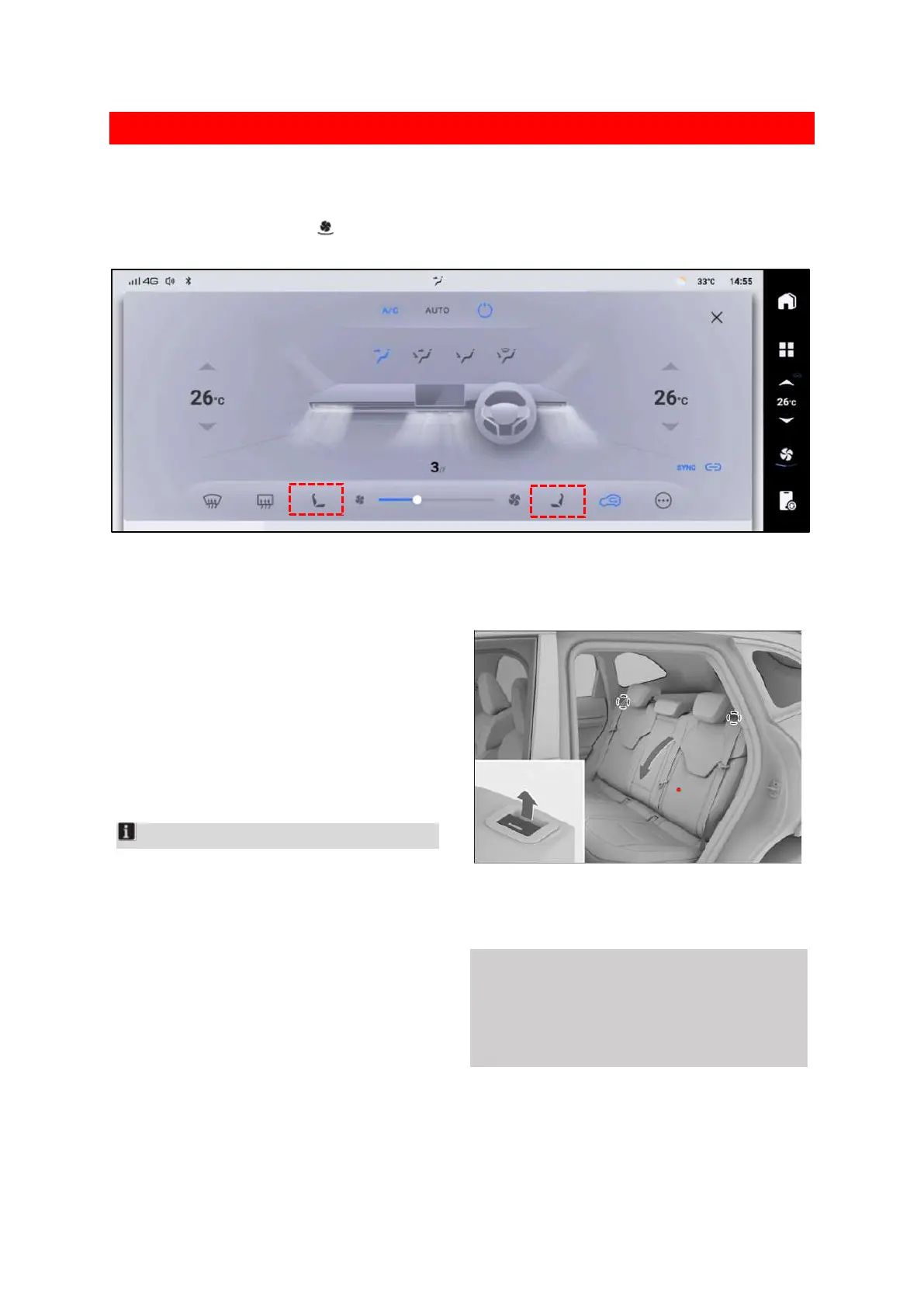 Touch the seat icon at the bottom of the multimedia display screen to enter the seat adjustment