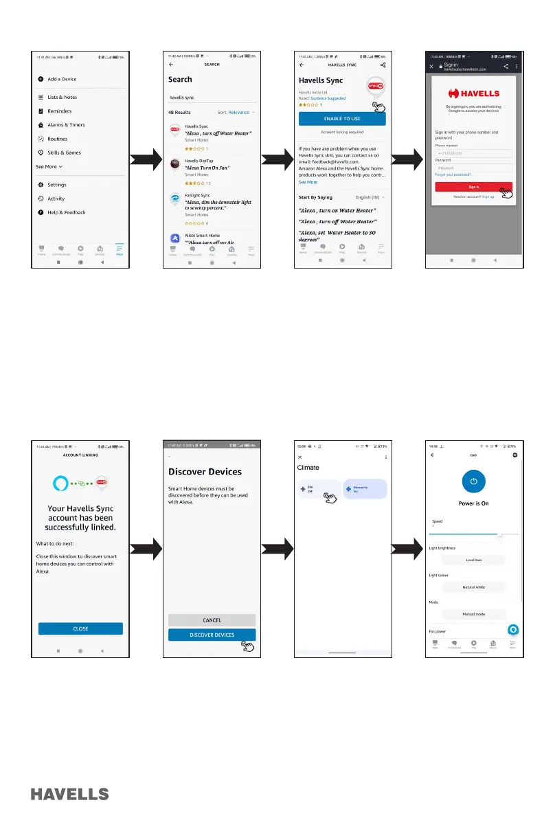 Havells Elio - Alexa Integration Steps; Alexa Account Linking and Device Discovery