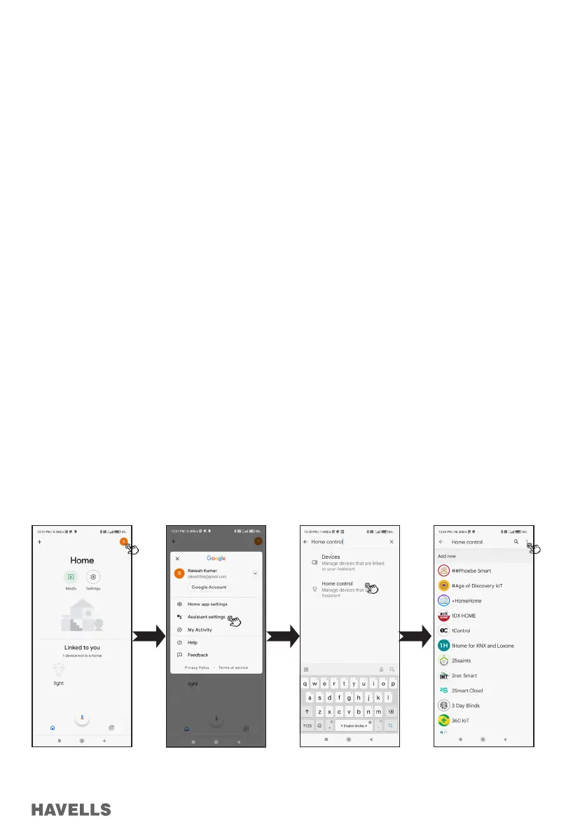 2. Refer Section, APP User manual (page 8 to 16) for setup using ‘Havells Sync’ APP Account”.