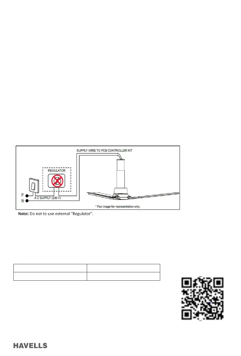 C. Fan Wobbles 1. Don’t connect the fan with wall mounted External Regulator.