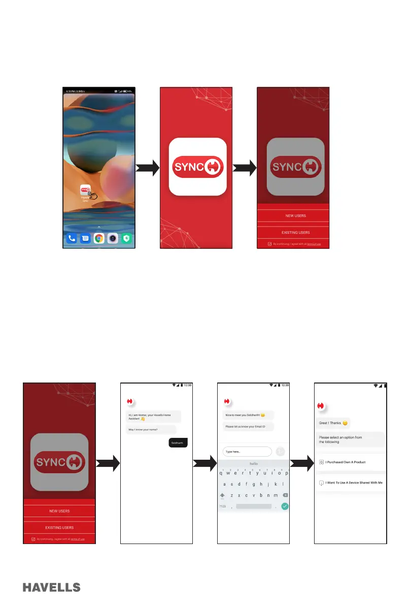 1. Open the APP by taping the “Havells SYNC” icon in your smart phone (Figure 19).