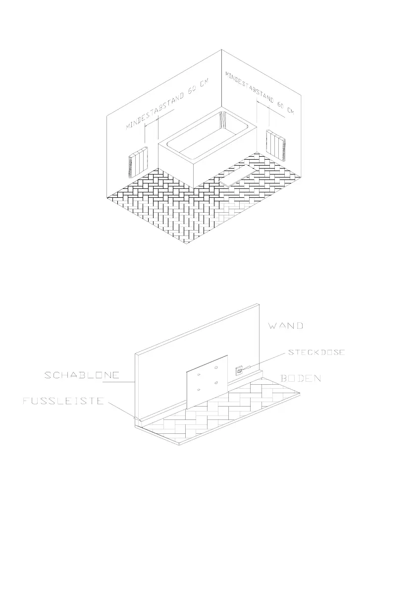 - Falls der Heizkörper in eine Badezimmer oder Toilettenraum installiert werden soll, müssen