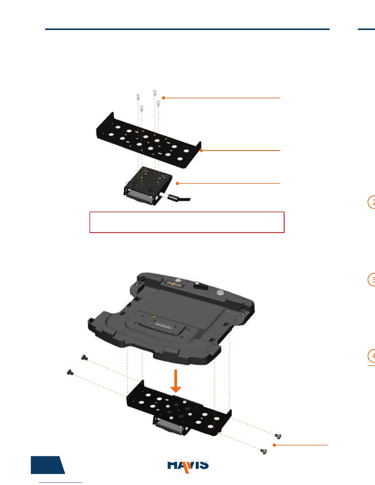 NOTE: Numerous hole patterns present in Mounting Bracket will accomodate Havis Motion