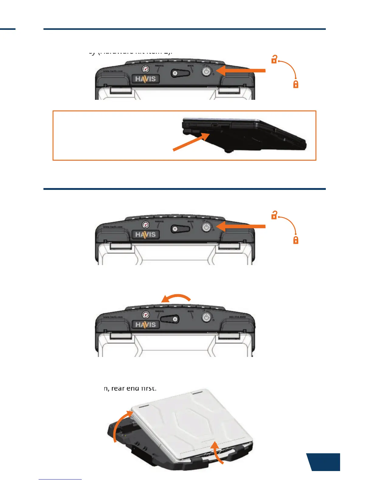 1) If previously locked, unlock Docking Station using supplied key.