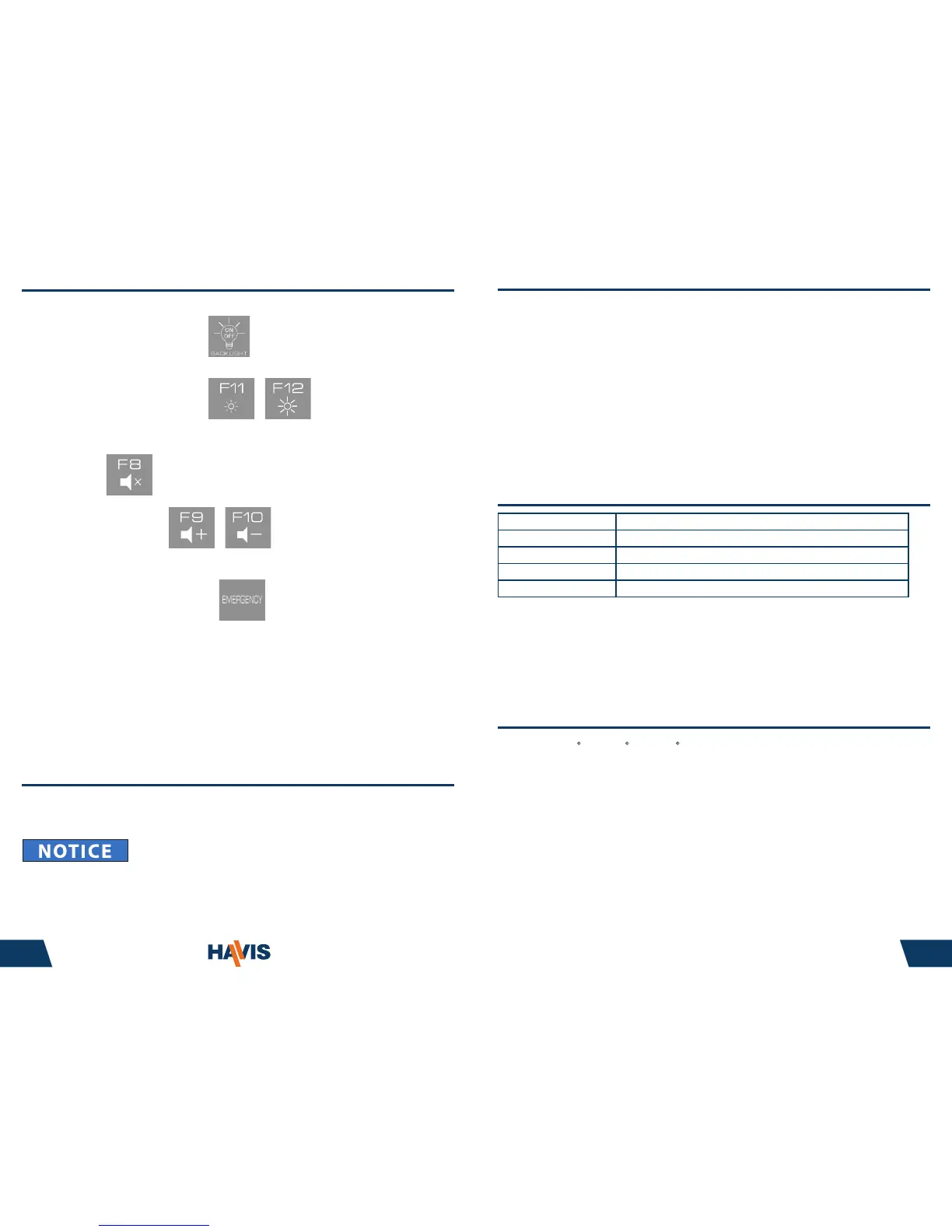 • Do not leave the Rugged Keyboard in a high temperature environment (greater than 85°C, 185°F)