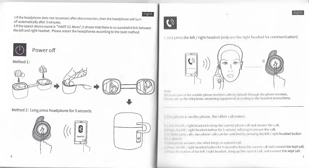 Havit G1 - Powering Off and Call Management; Power Off Procedures; Handling Incoming Calls