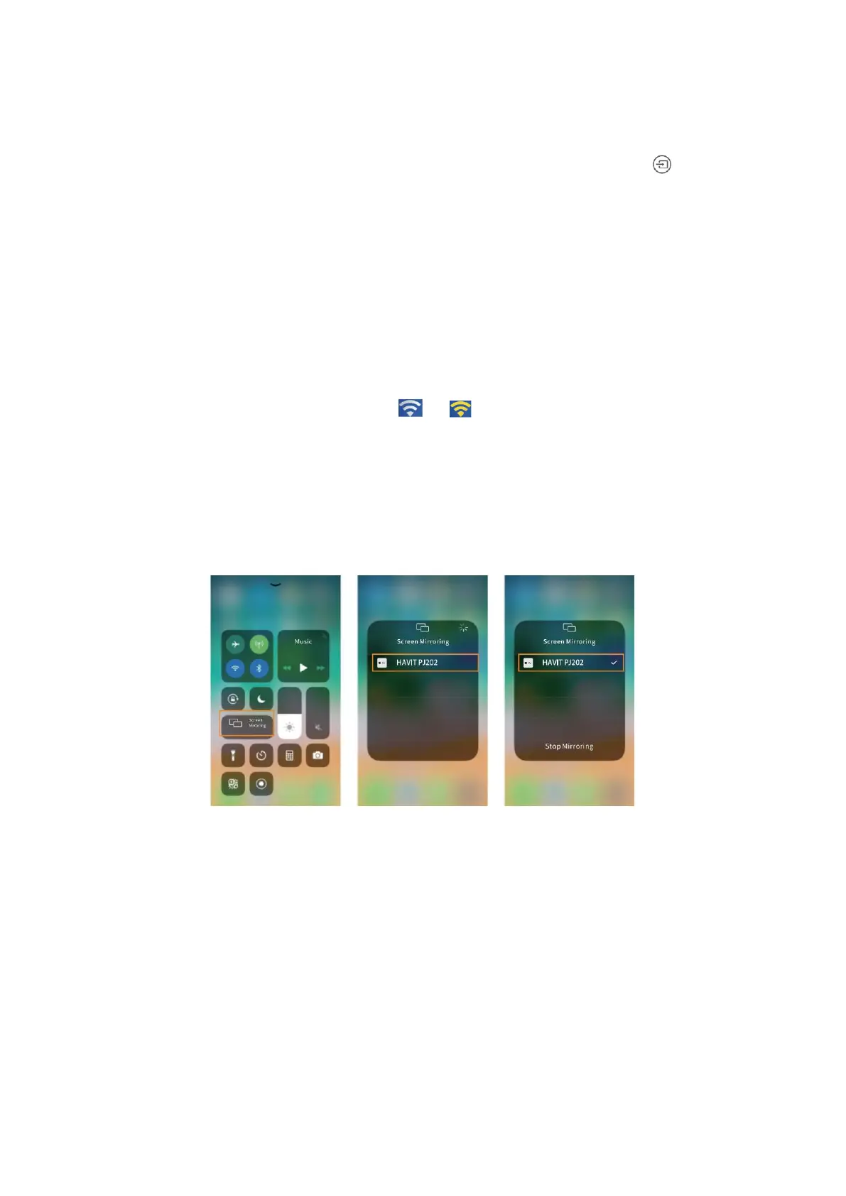 1. Zapnite projektor, vyberte možnosť Screen Mirroring ako vstupný zdroj a vstúpte