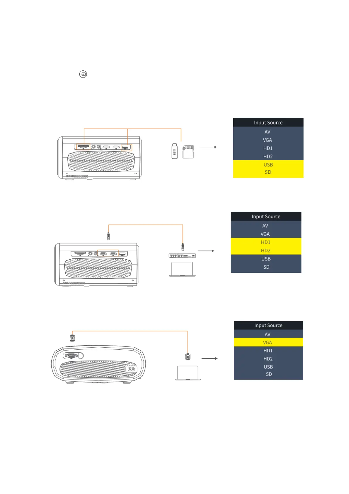 Drücken Sie auf dem Beamer oder auf der Fernbedienung, um die Schnittstelle der