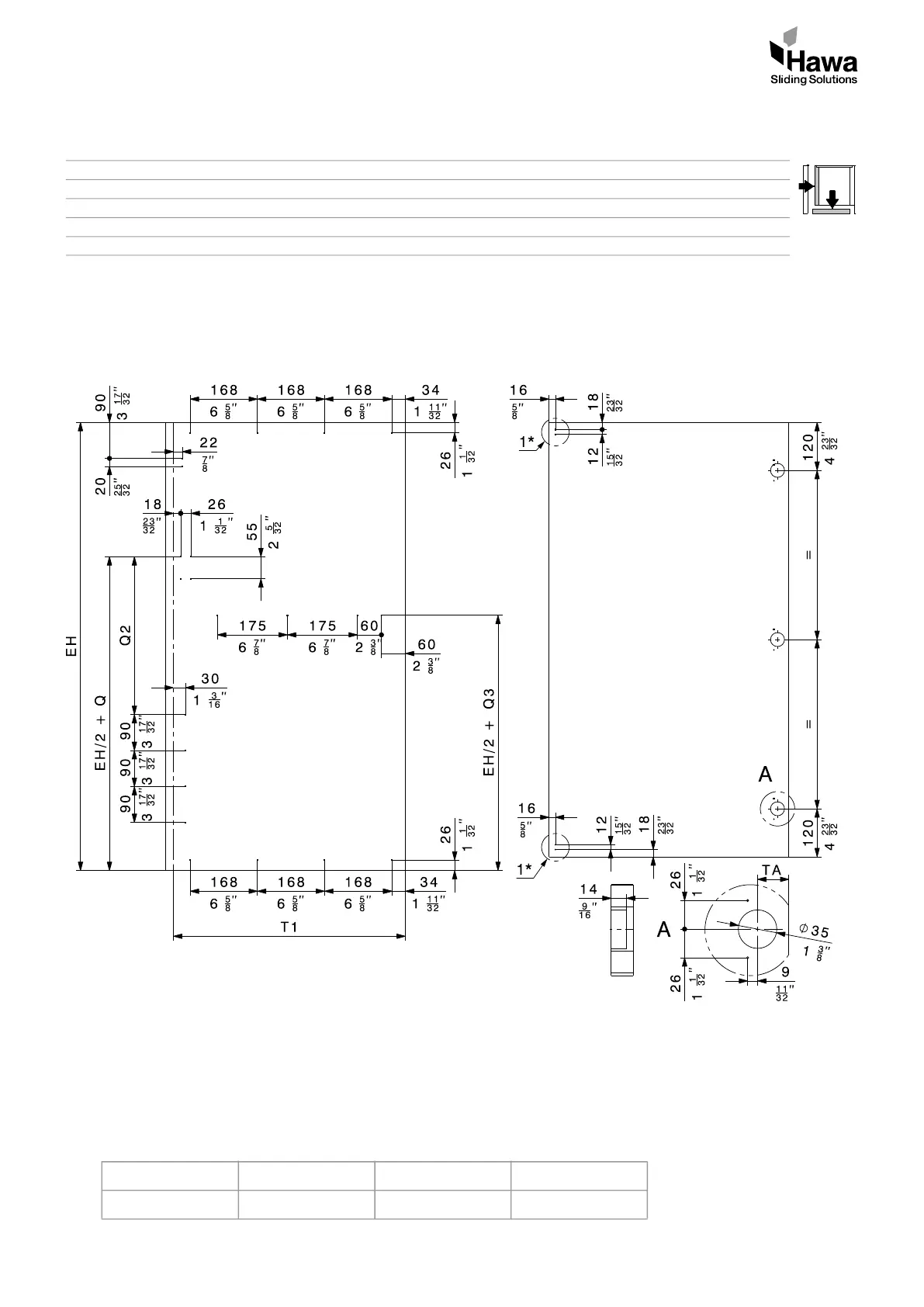 EN Calculation: Drill hole positions HAWA Concepta 30