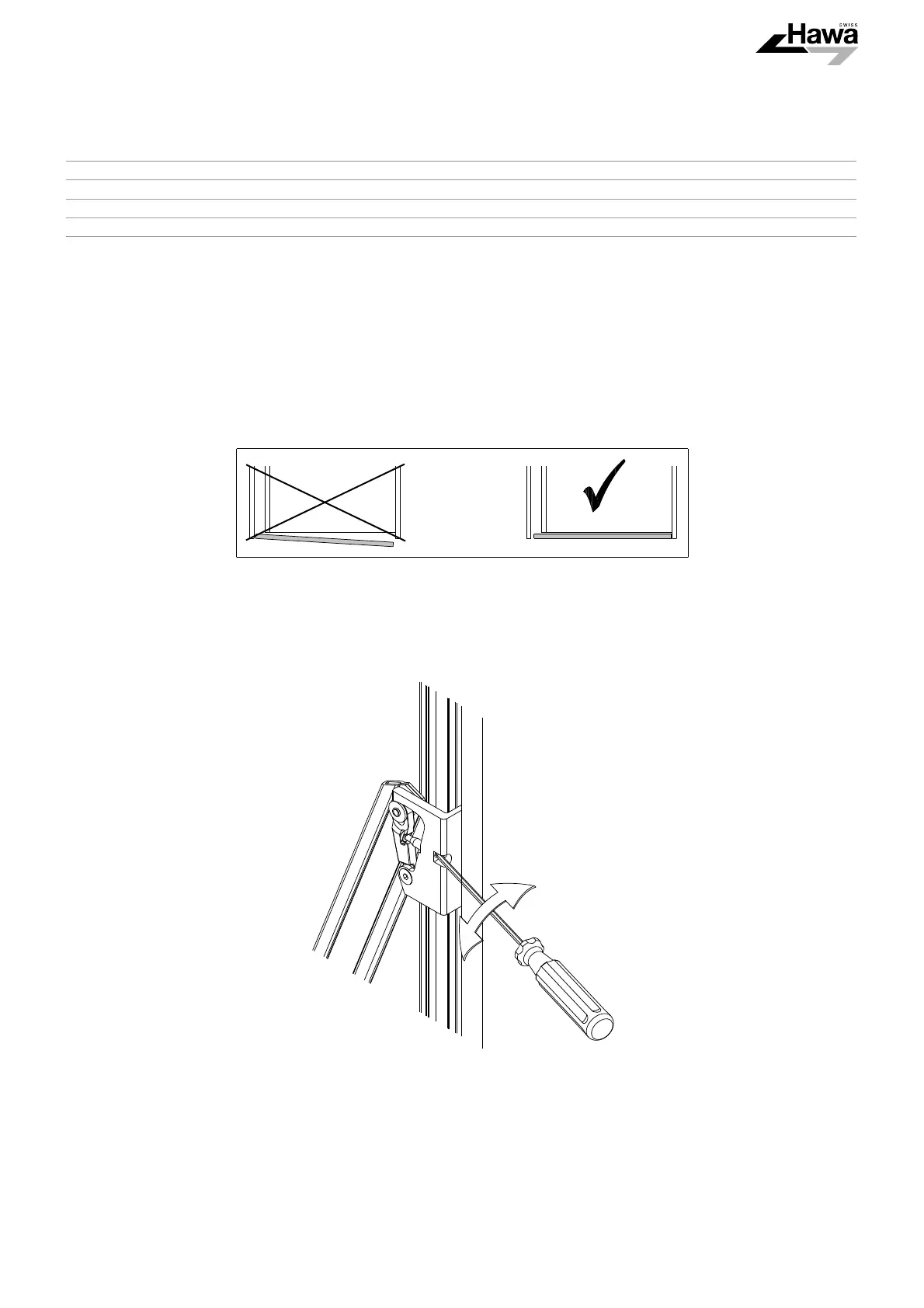 2. Falls nötig Holmneigung mittels Scherenlager anpassen bis Türe korrekt schliesst.