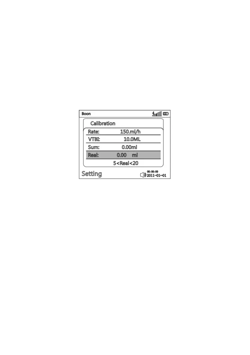 calibration interface. Install the infusion set as per instructions in 8.1.3 and prepare liquid volume/weight