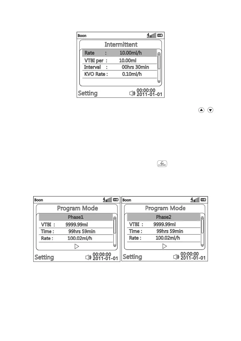VTBI per time, Interval time and KVO Rate are adjustable, after confirming, press OK to