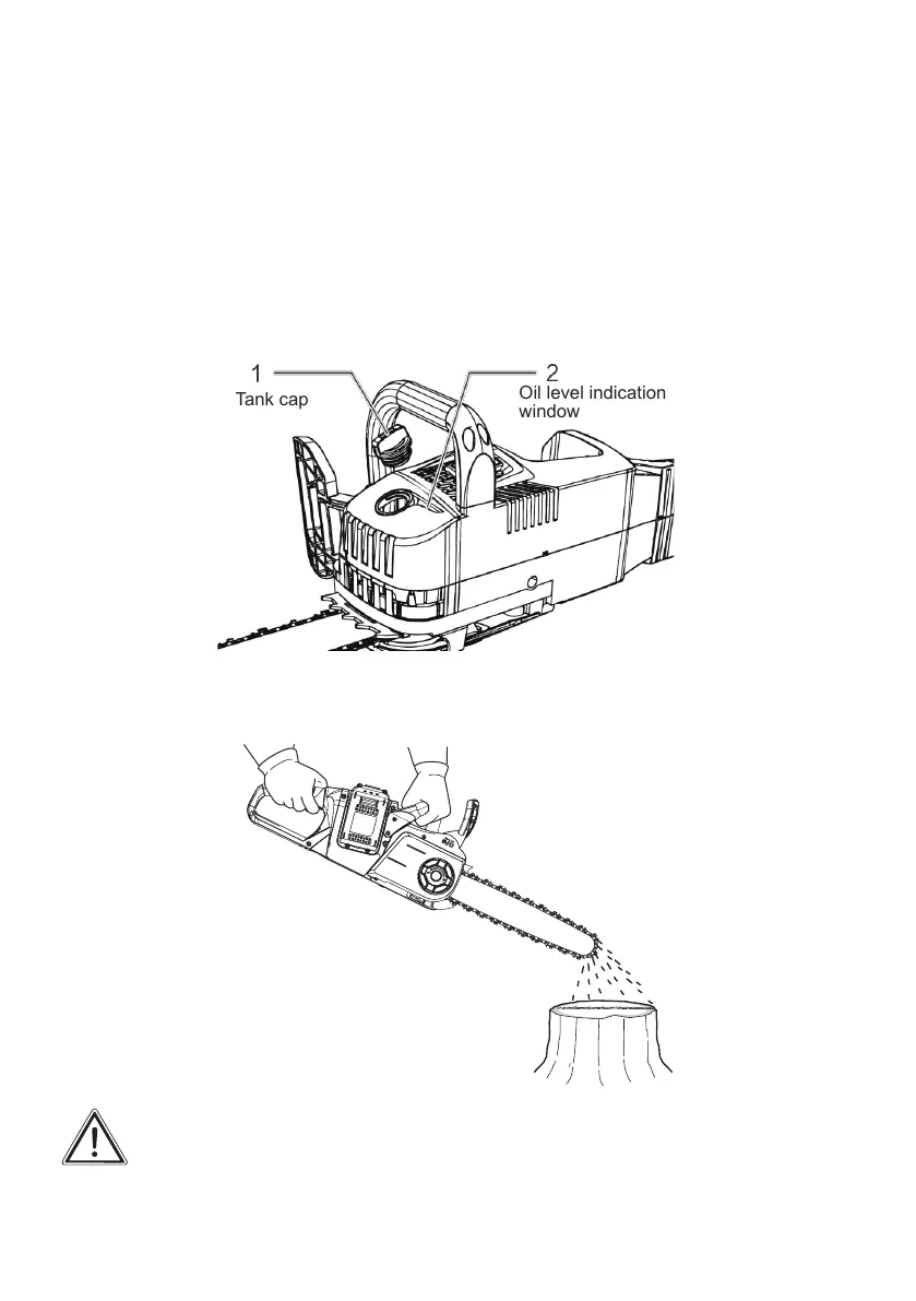 It is essential to fill with oil before use. Never operate the chain saw without chain oil or at an empty
