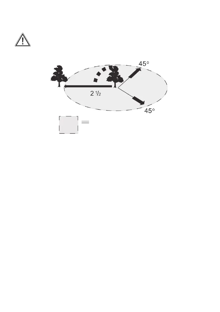 of 45° either side of the tree axis (refer to the “felling area”. Pay attention to falling branches.
