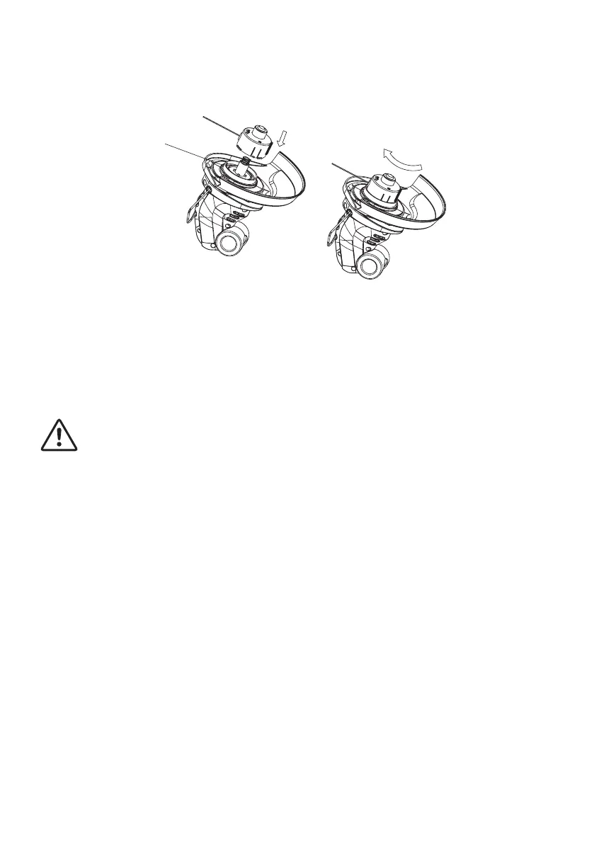 4) Insert the spring, put the spool with the spool carrier back by pushing the carrier down and turn it