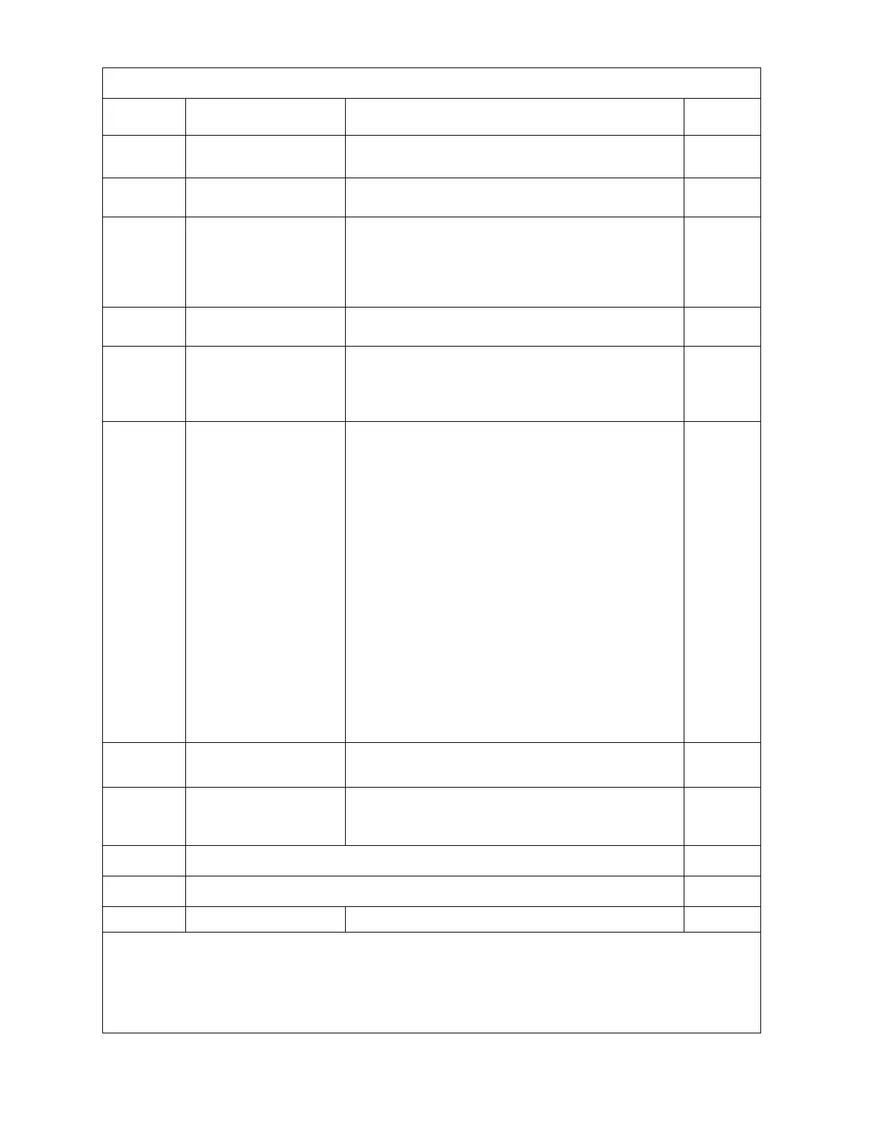 Error Code Table for