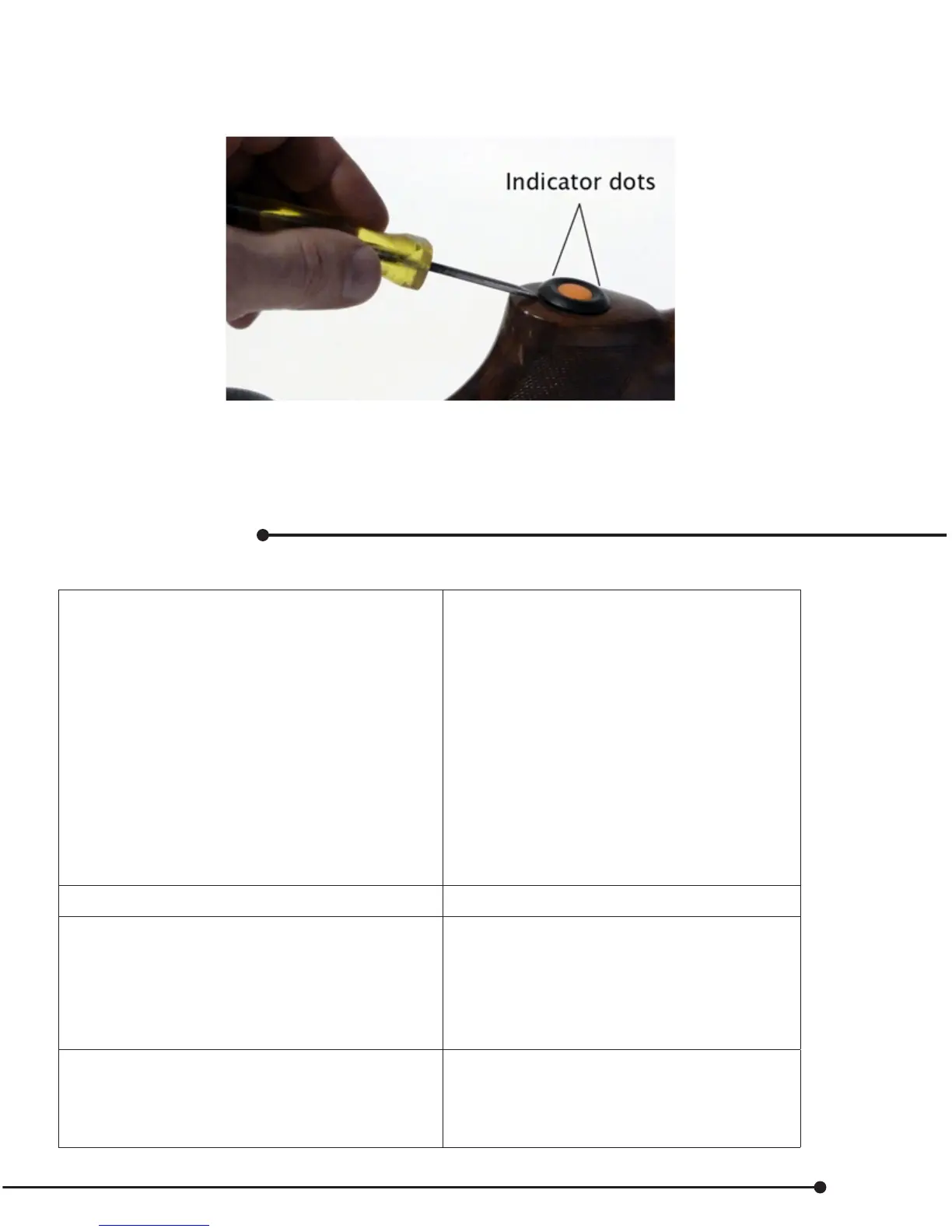 • The two dots on the bezel indicate where the tabs are