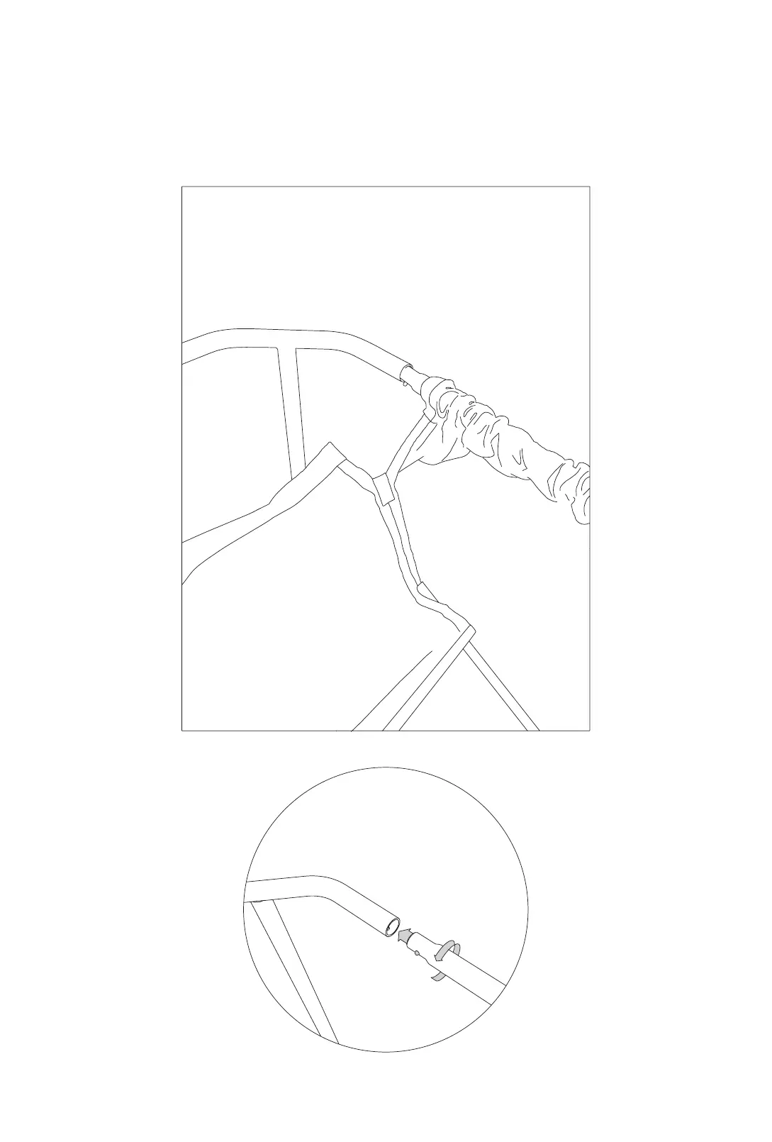 Insert the backrest tube (E) into both back legs (C). Make sure the canvas is