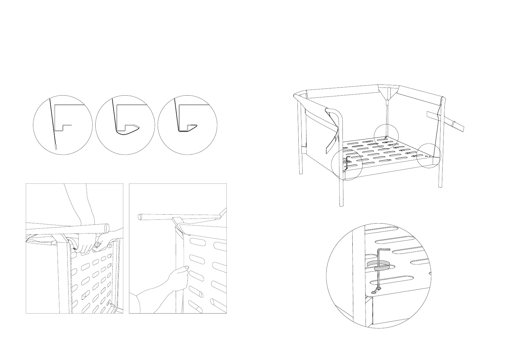 Slide the plastic profile onto the bottom of the seat frame. It is important to start