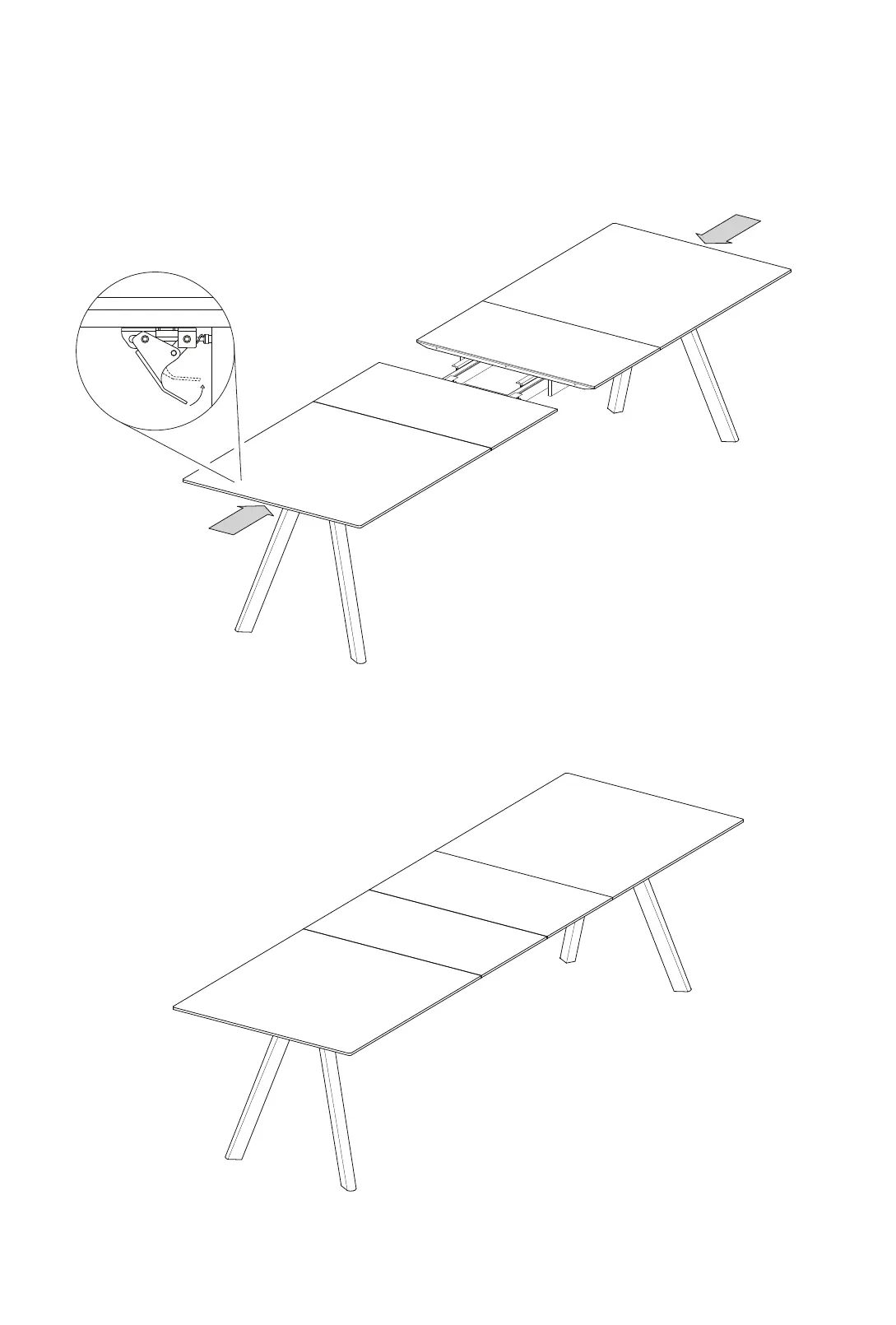 Push both ends of the table to close the centre gap and then lock the mechanism.