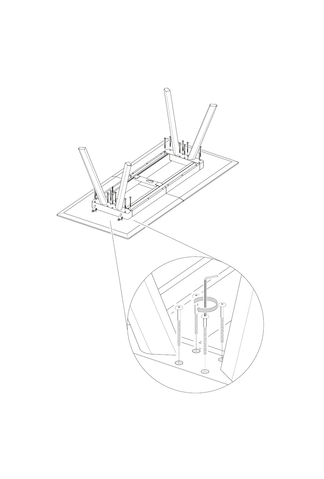 Tighten the screws (part E) using the Allen key (part D).