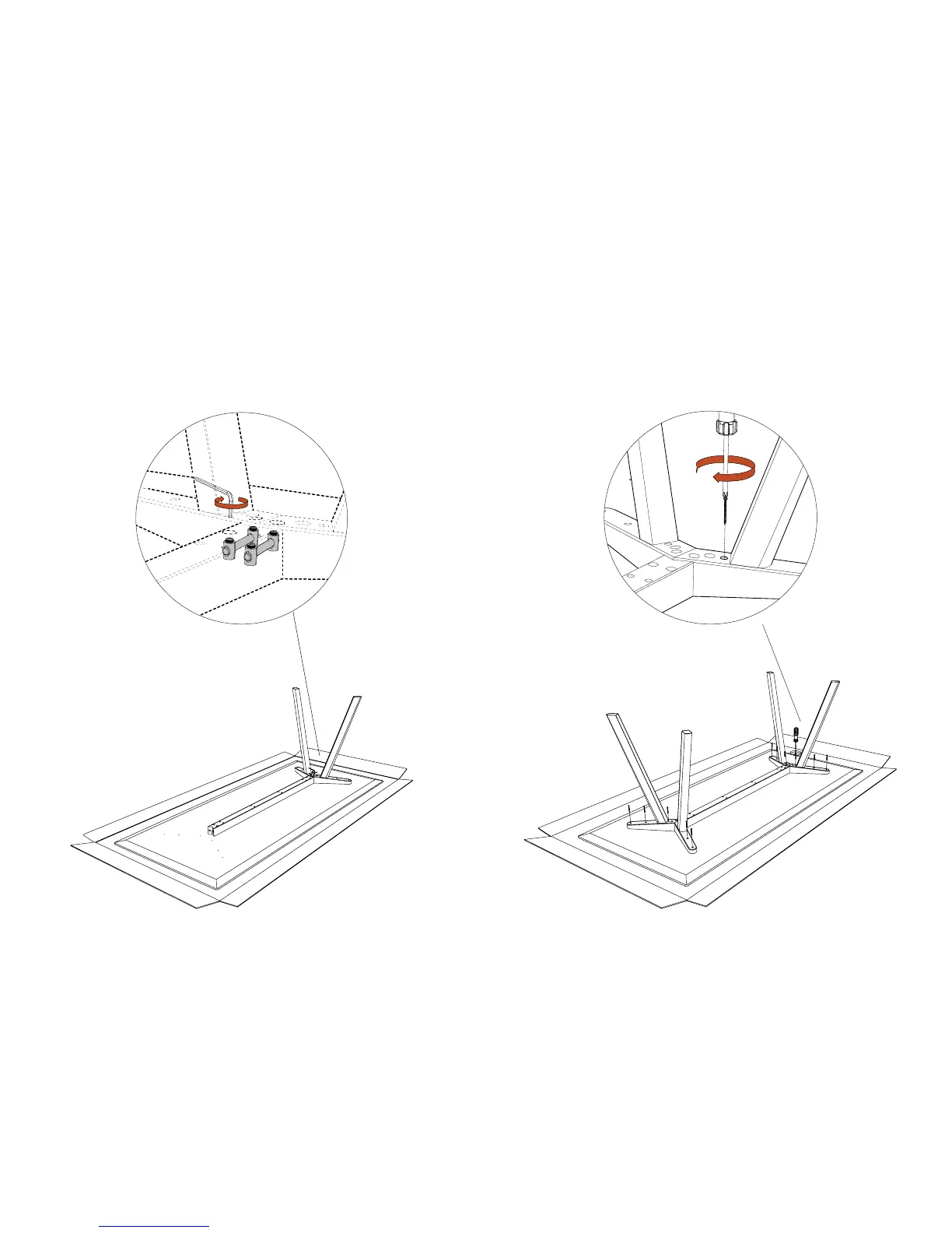 Tighten all E parts completely. Repeat step 6 - 8 at the other end of the table.