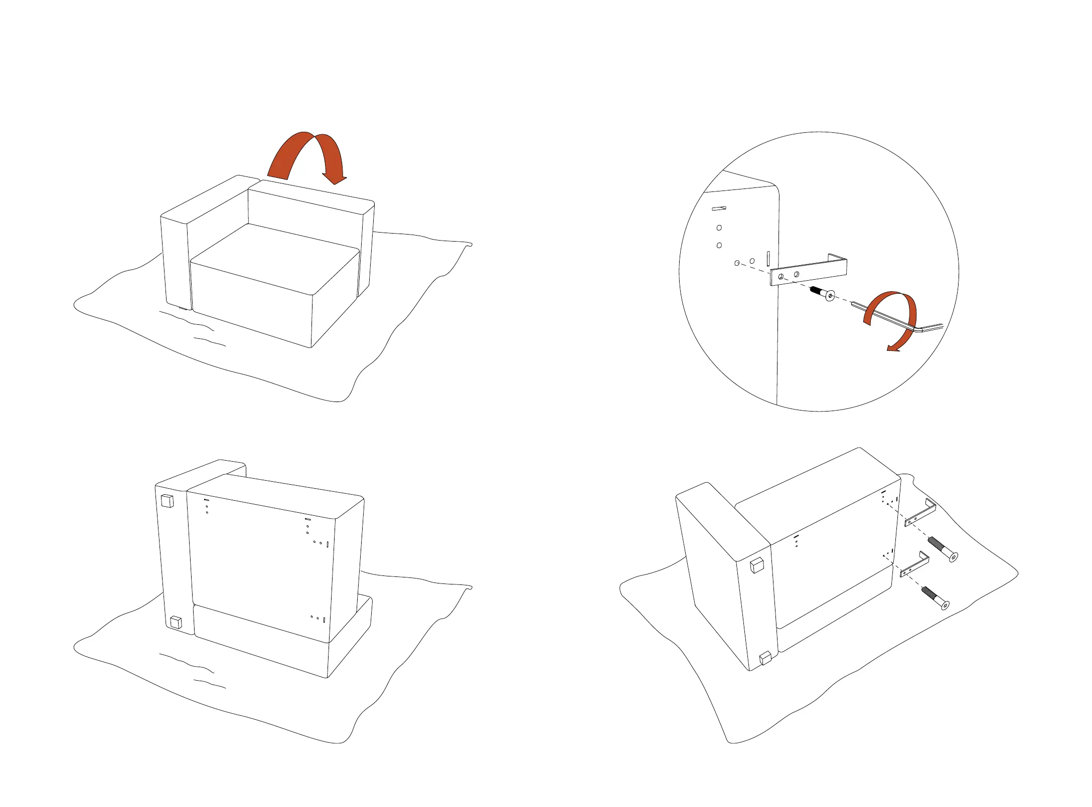 Place part F in the holes. Use the allen key (G) to tighten F parts completely.