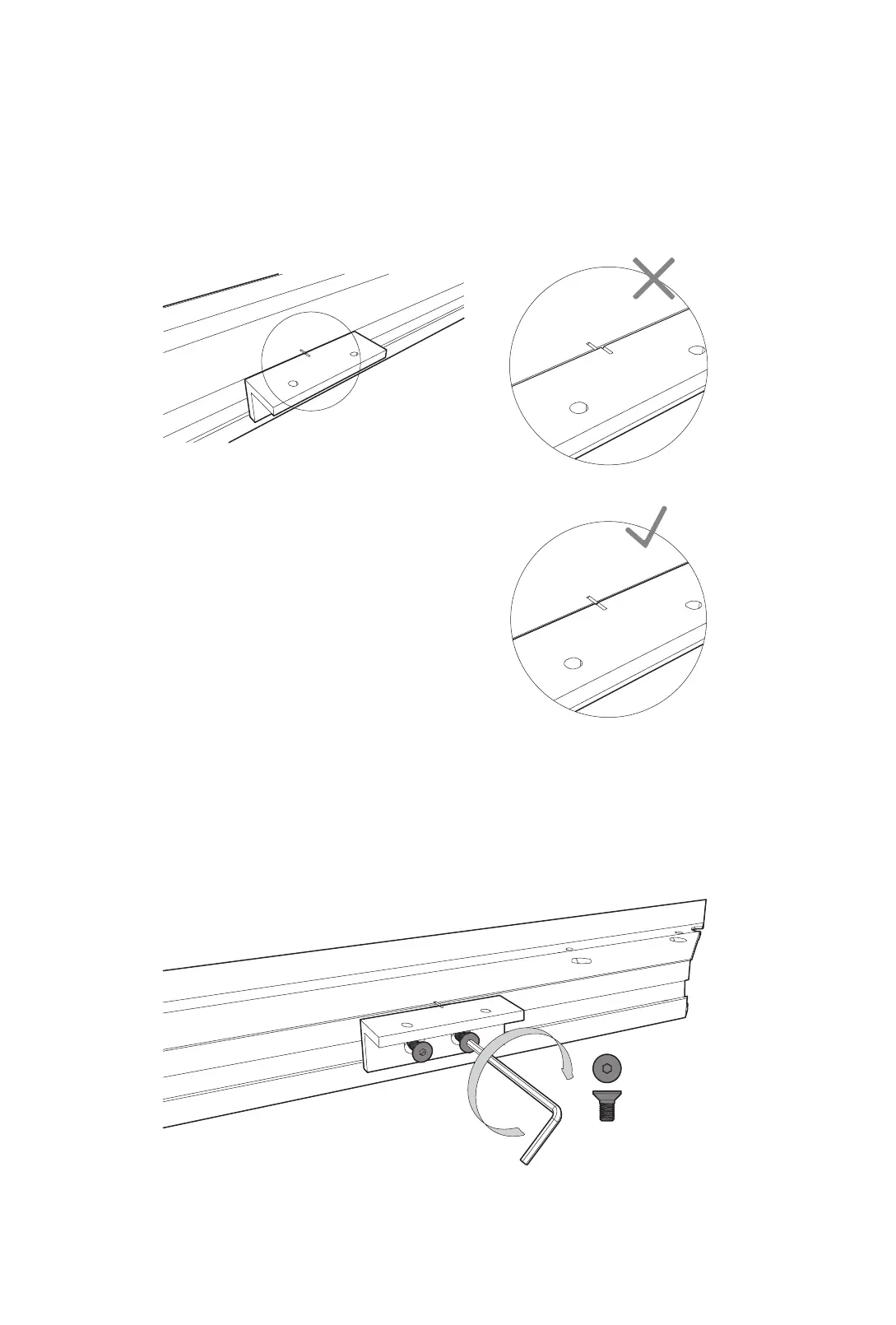 Locate the outer mark on the short frame profile. Align the support bar connector so that