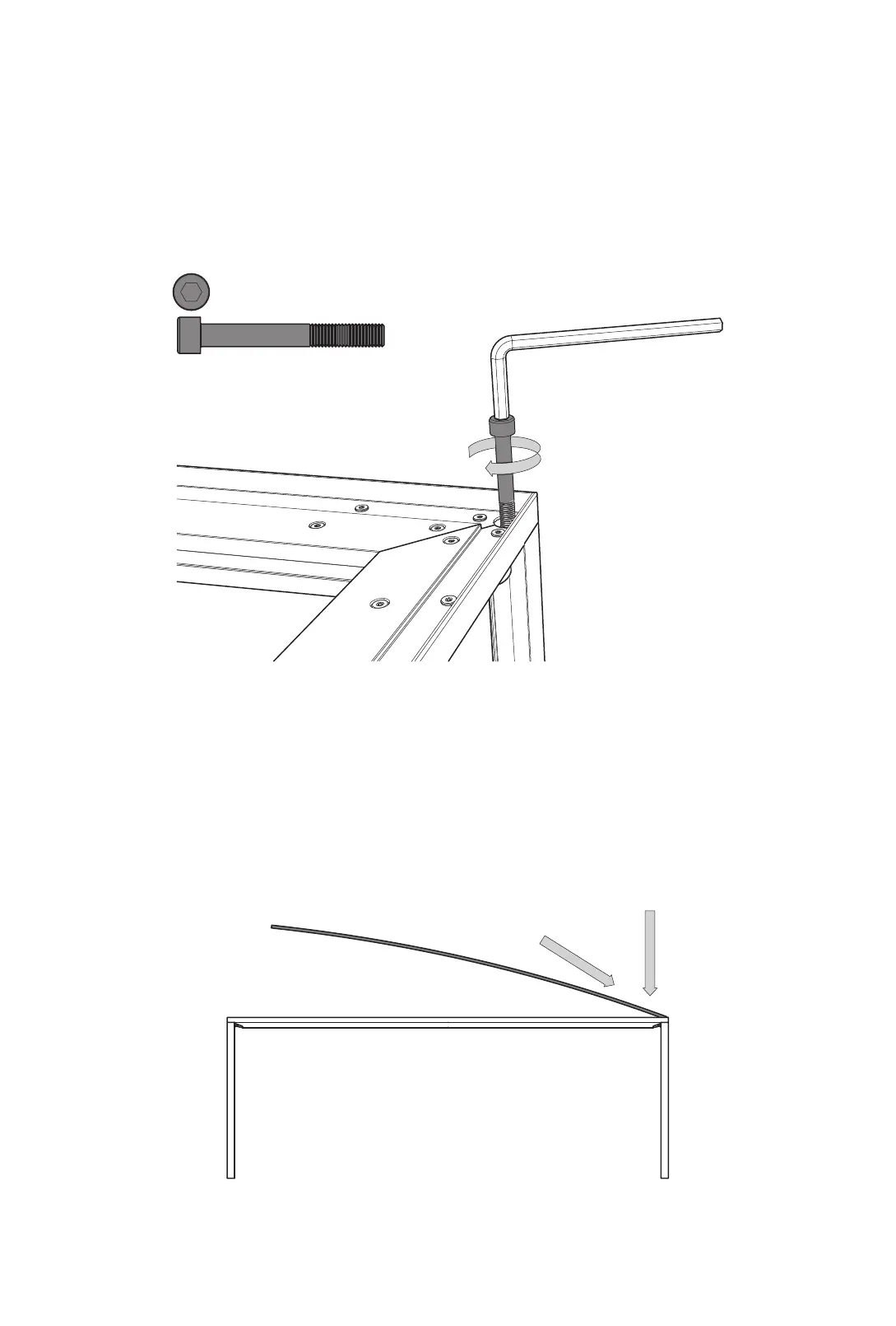 Insert the leg screws in the holes in the frame profile and secure the legs