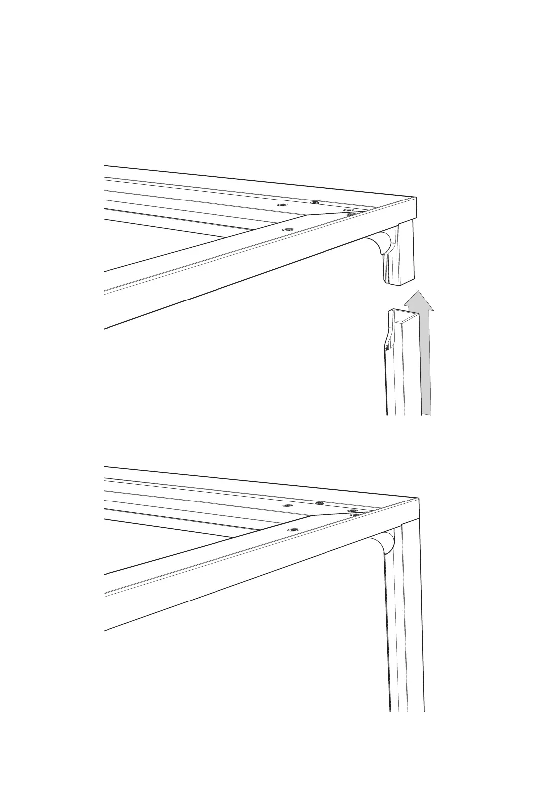 Any gaps can lead to difficulties when inserting the leg screws.
