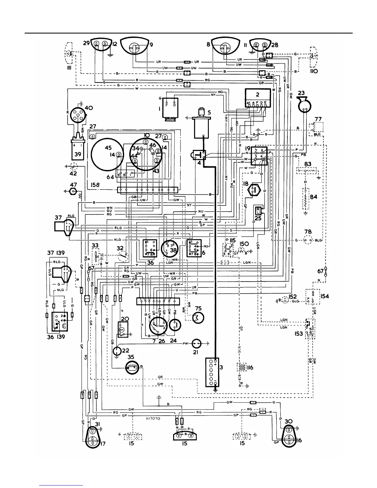 Wiring diagram 5 - Mini Clubman Saloon and Estate (with dynamo and toggle type switches)