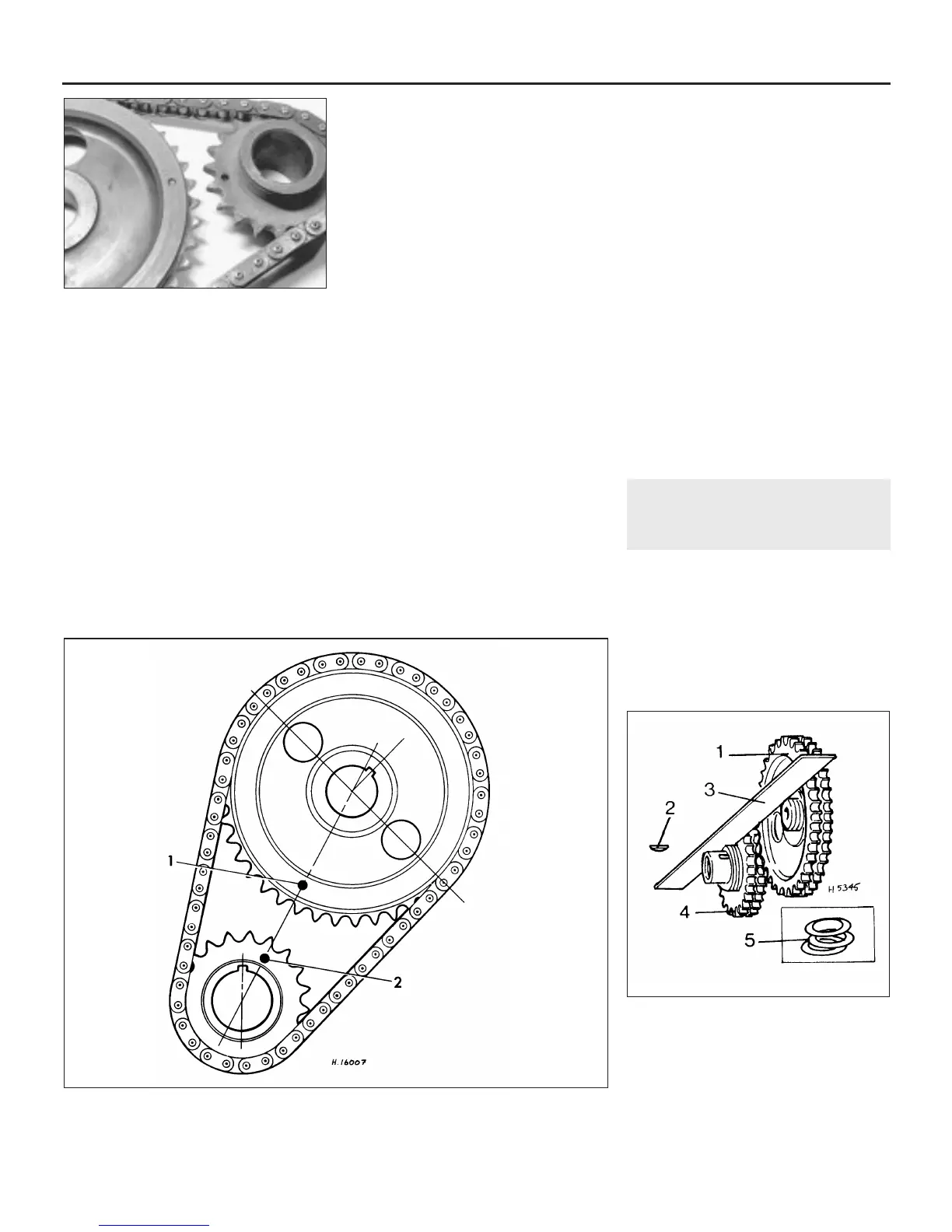 1 Timing dot on camshaft sprocket 2 Timing dot on crankshaft sprocket