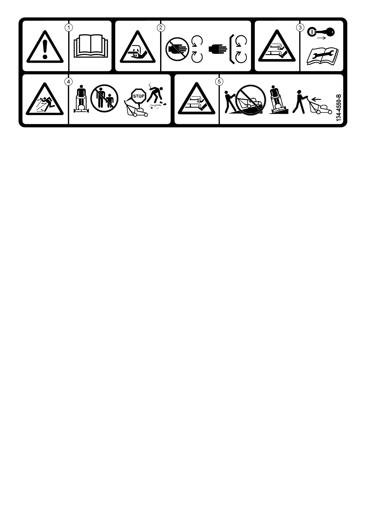 1. Warning—read the Operator’s Manual. 4. Thrown object hazard—keep bystanders away;