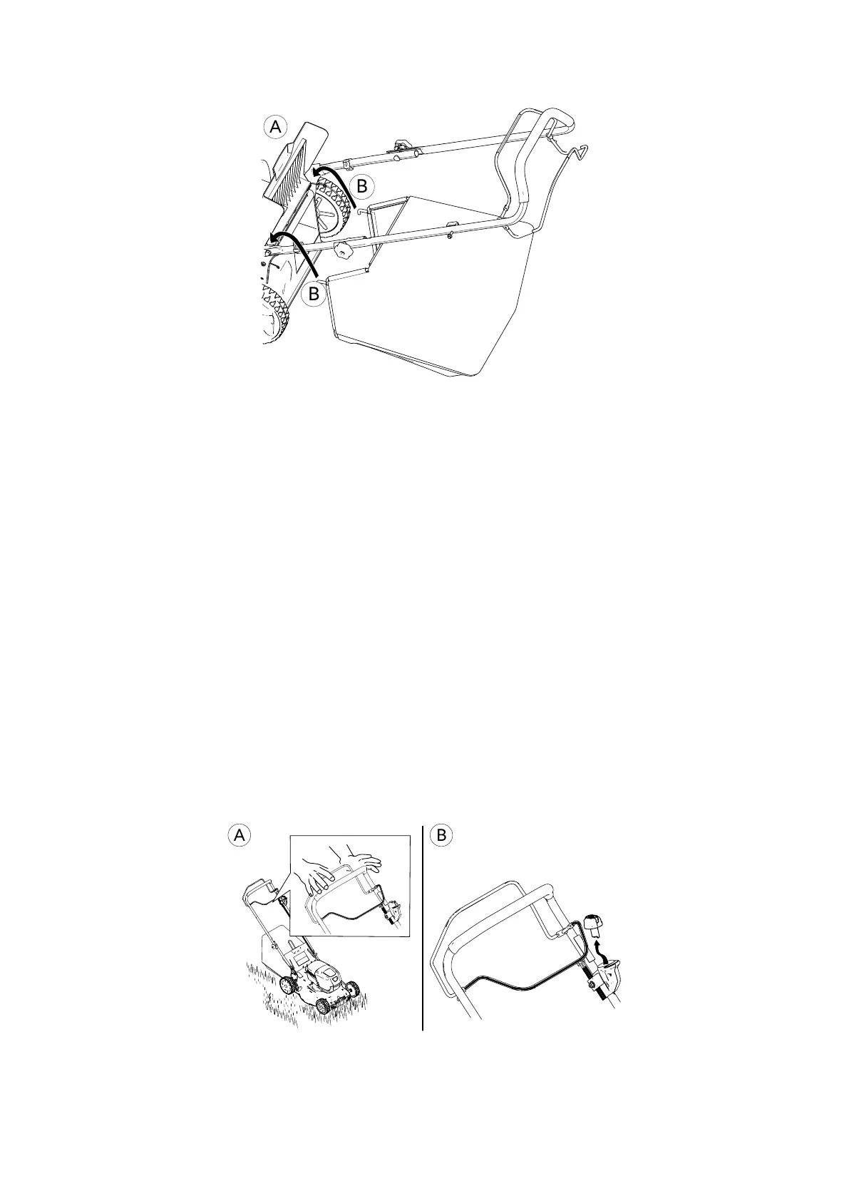 2. Install the grass bag, ensuring that the pins on the bag rest in the notches on the handle (Figure 16B).