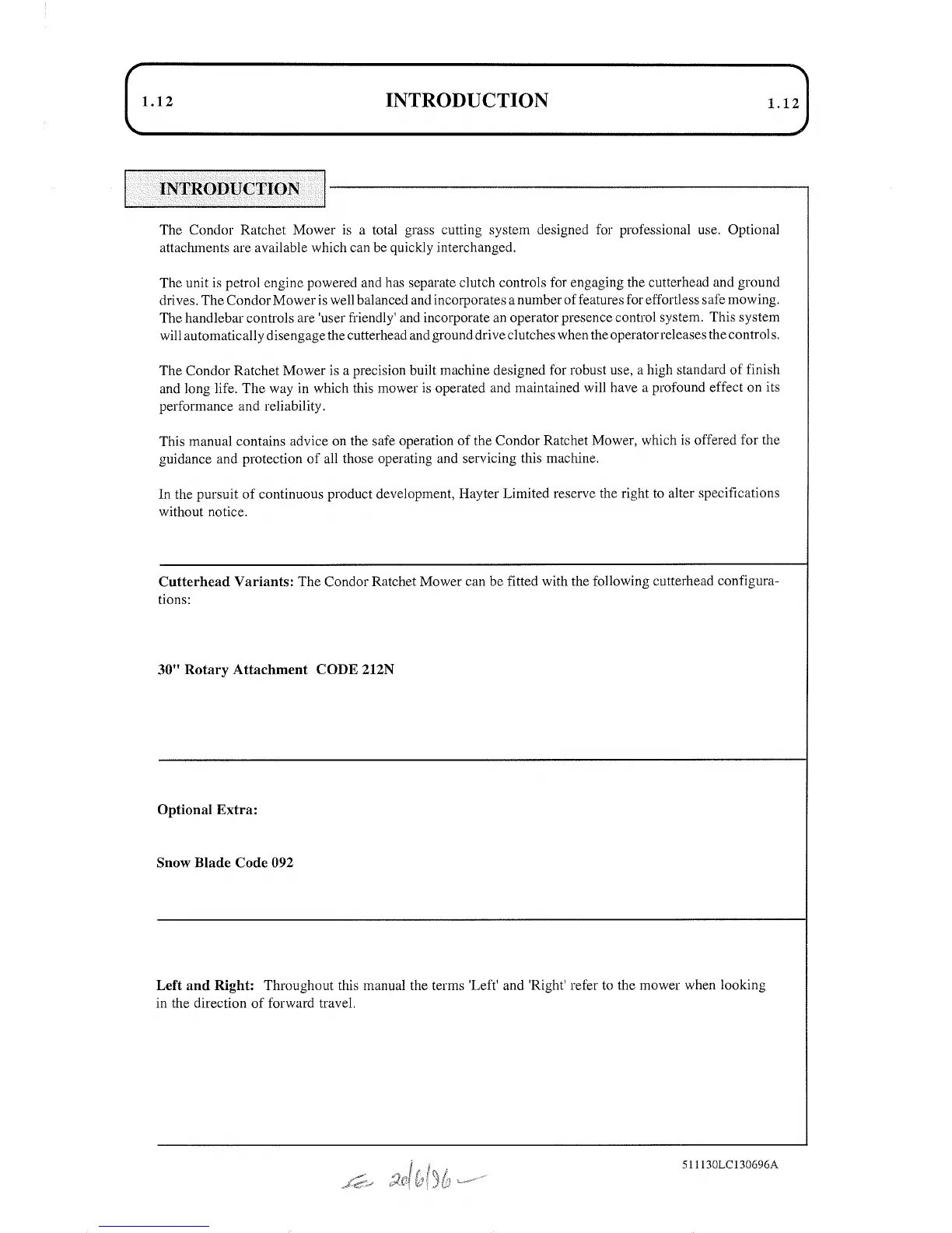 Hayter Condor 511N - Introduction and Overview; Mower Introduction and Variants; Manual Terminology