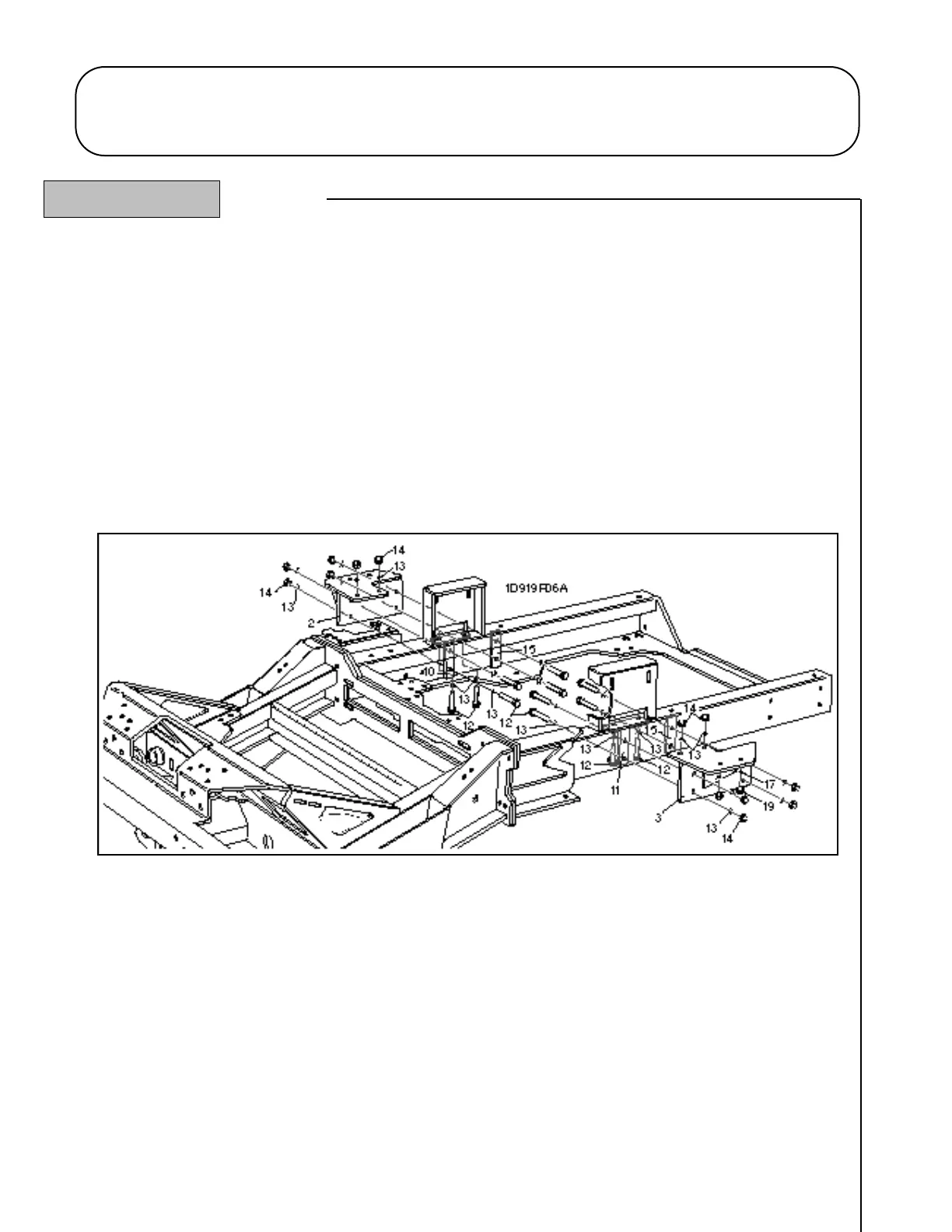Fit the front tool box bracket with fasteners (items 12, 13, 14) which are used to secure the rear of the R.H. Cab