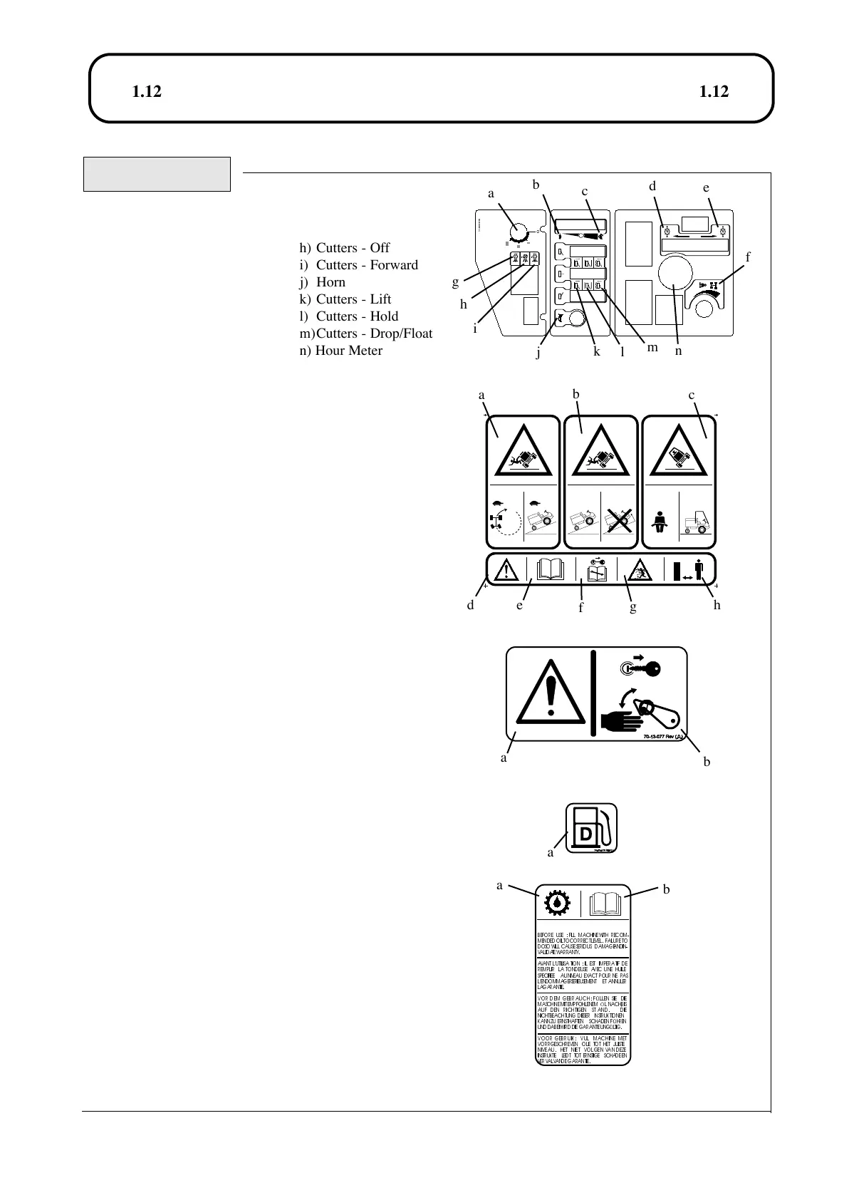 c) Warning - Seat belt must be worn with a ROPS fitted.