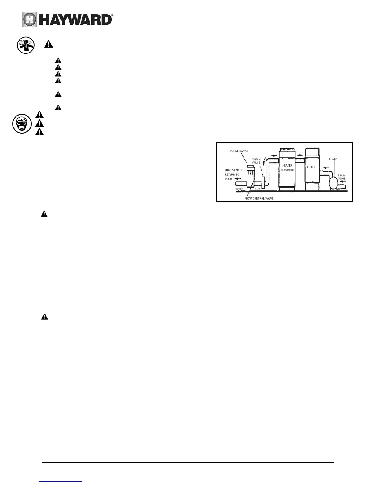 CAUTION Damage to the heater or filter may result if concentrated chlorine is allowed to flow through them.