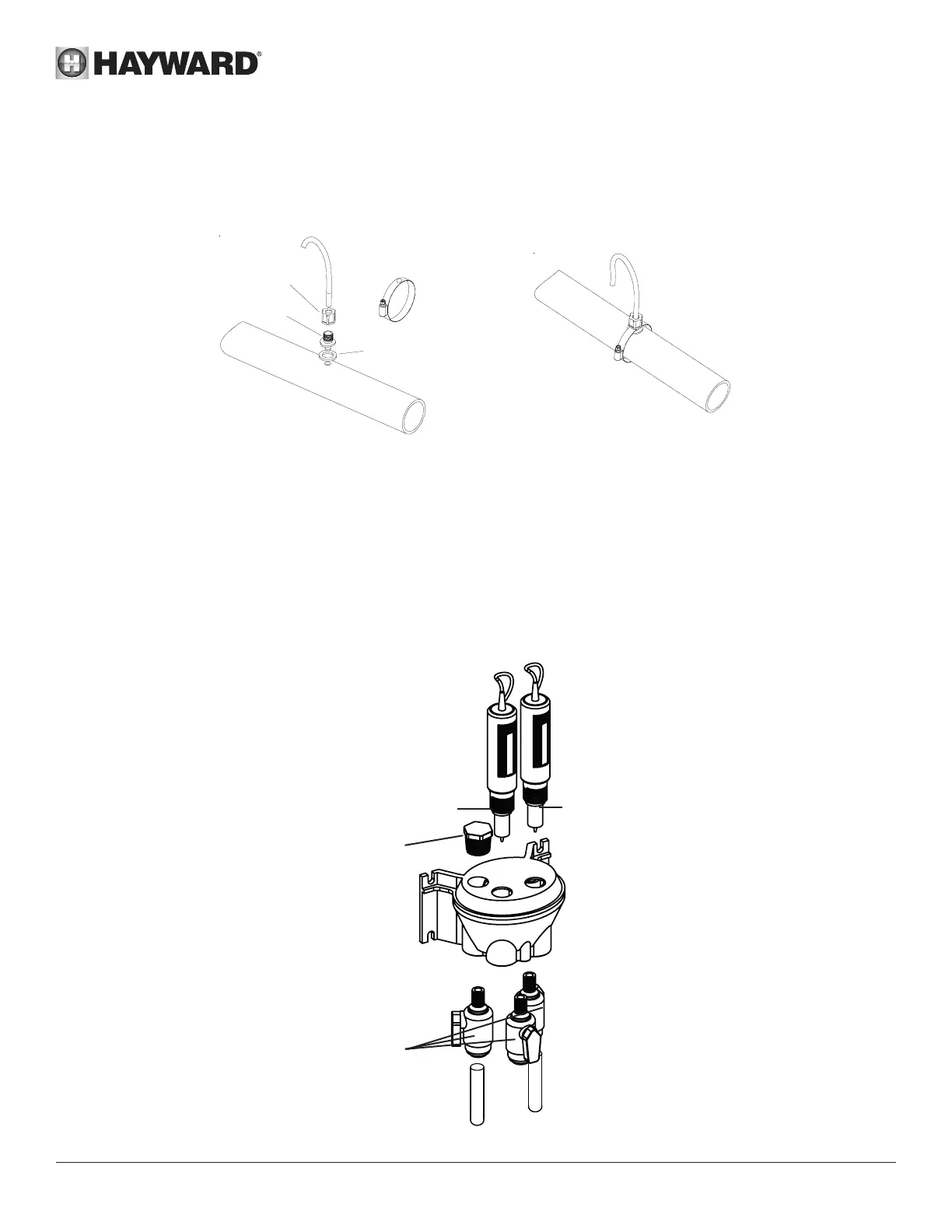 piscine avant de les installer. Appliquer une longueur de ruban Téflon sur le filetage des sondes. Serrer les sondes à la