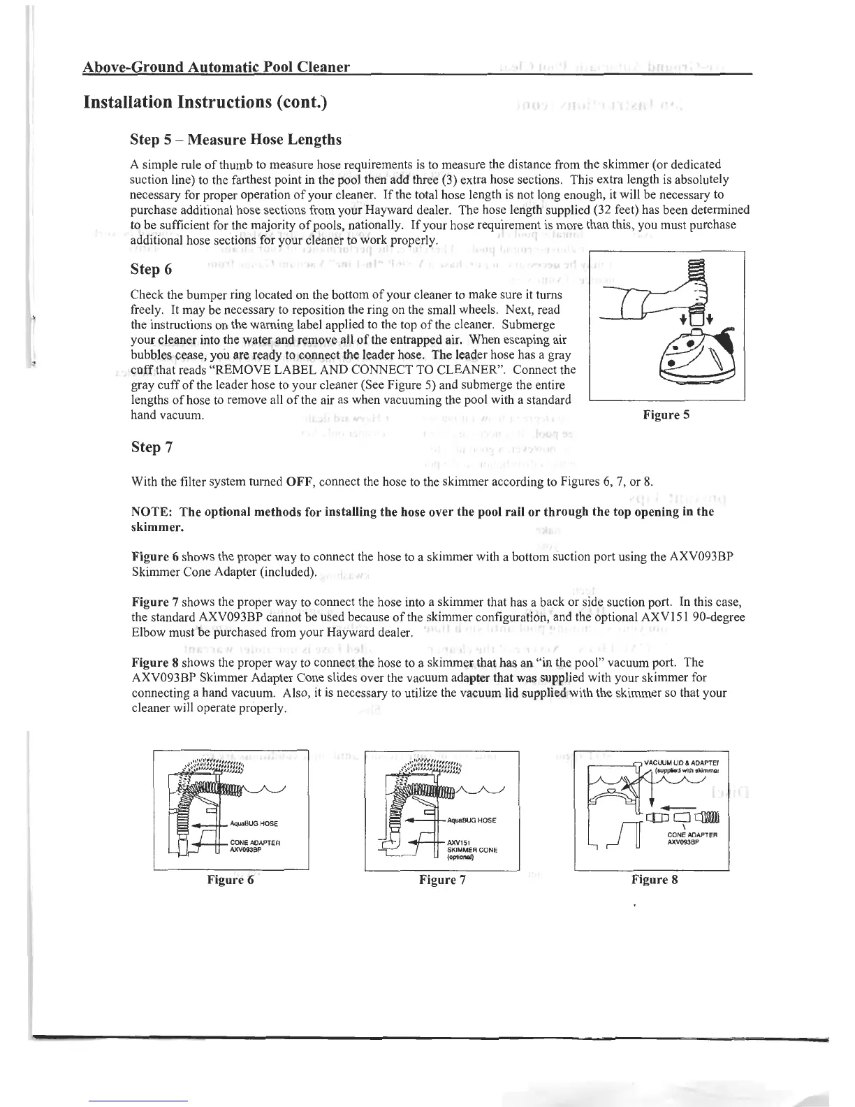 Hayward diver dave - Installation Instructions (cont.); Step 5: Measure Hose Lengths; Step 6: Cleaner Preparation and Submersion; Step 7: Connecting Hose to Skimmer