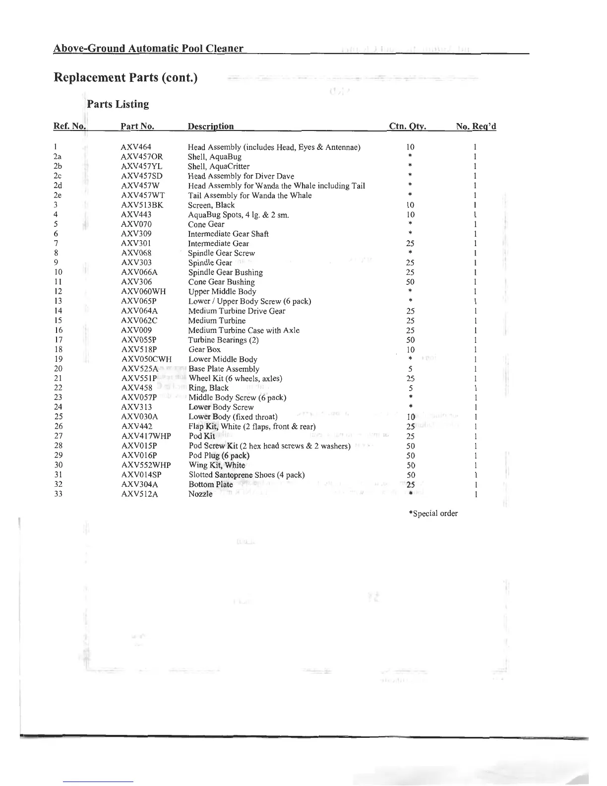 Hayward diver dave - Parts Listing
