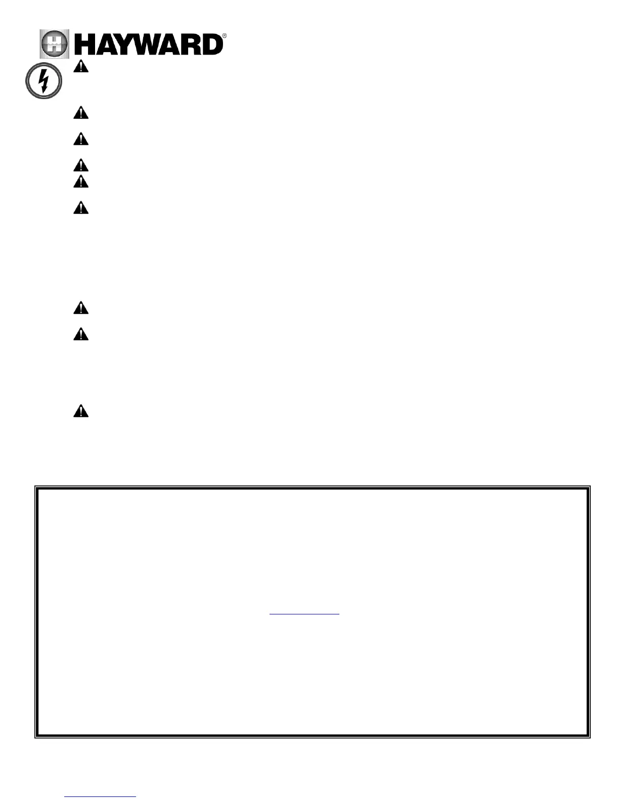 nearest Hayward Authorized Service Center please visit us at www.hayward.com.