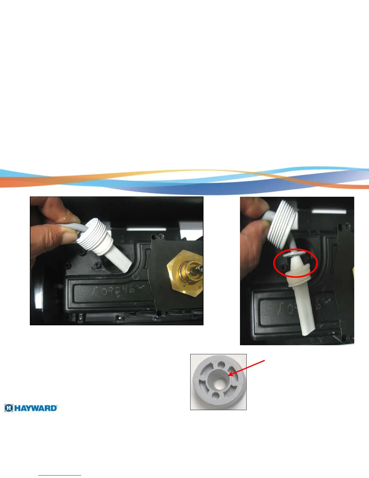 Hayward E-Vac - Power Cord Reassembly - Connector Installation; Seal and Washer Order and Taper Alignment; Threaded Plug Tightening with Torque Driver