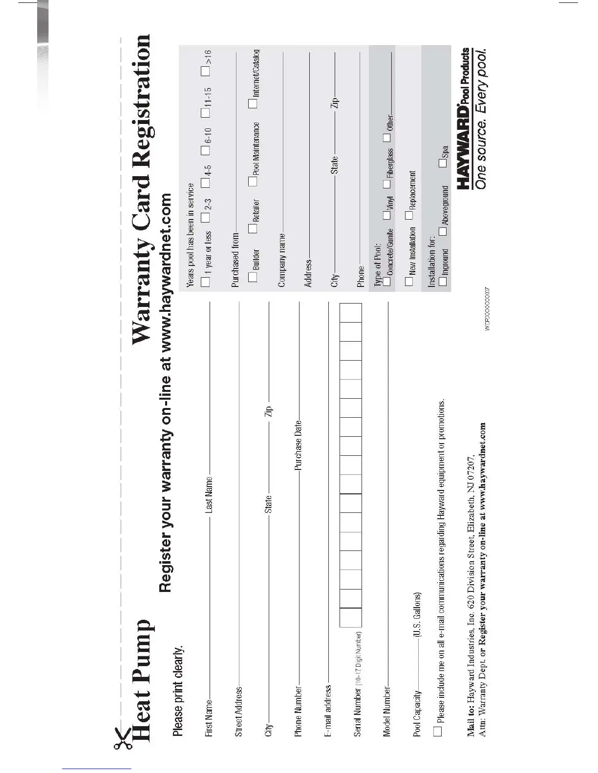 Hayward Easy Temp - Warranty Card Registration