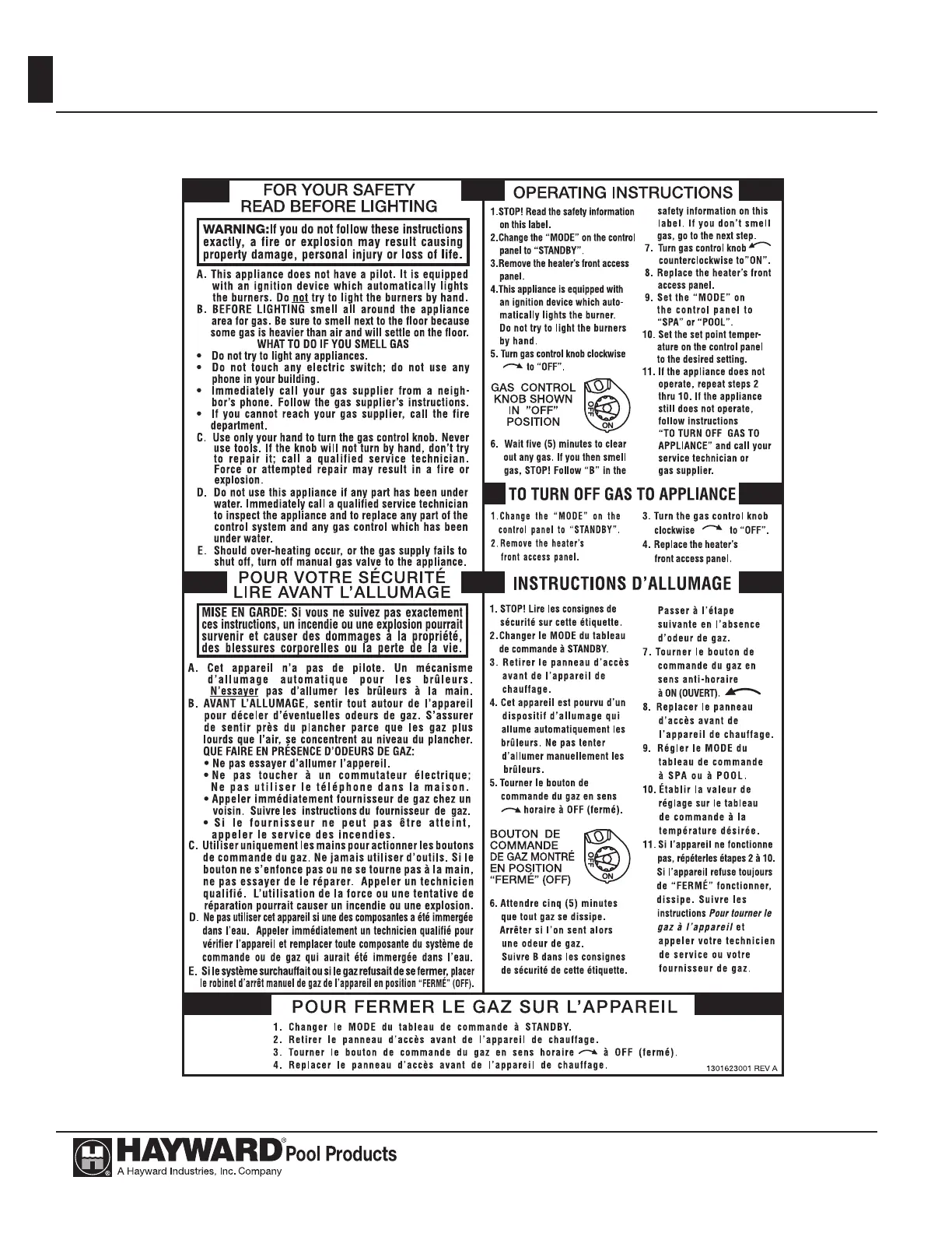 USE ONLY HAYWARD GENUINE REPLACEMENT PARTS
